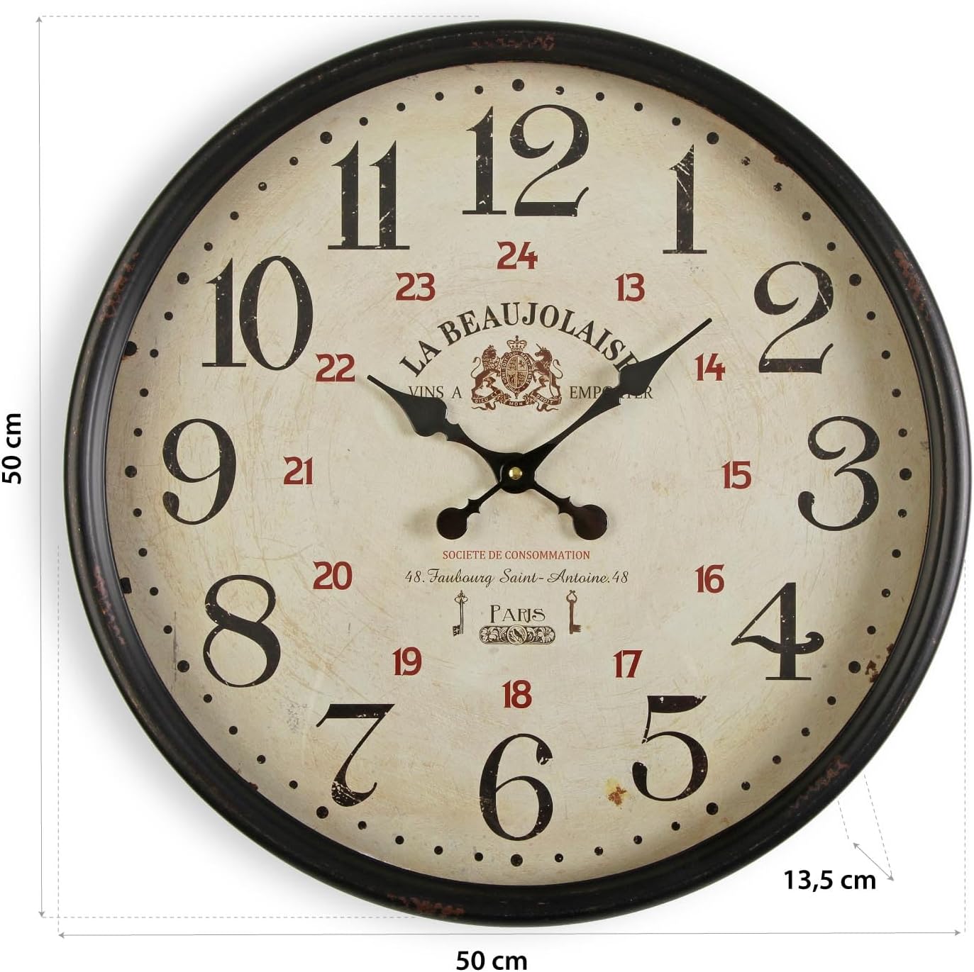 - DURCHMESSER - 50 Zentimeter. Mit grossen dekorativen Zahlen im Vintage-Stil und einem Getriebemechanismus.