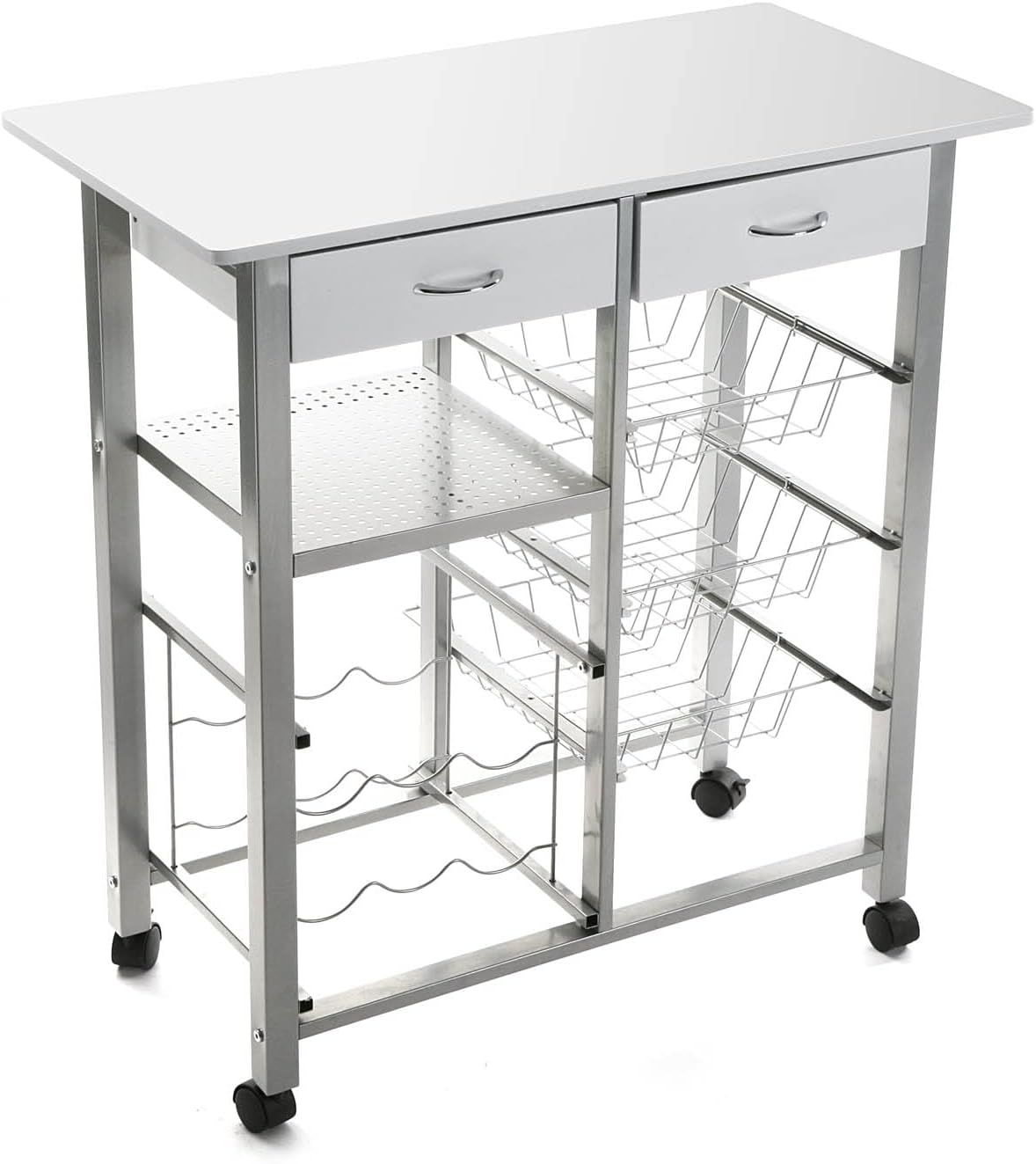 • VIELSEITIGES DESIGN - Mit dem Küchenwagen erhalten Sie etwas mehr Stauraum und Arbeitsfläche in Ihrer Küche. Verwenden Sie die Oberfläche, um Lebensmittel zuzubereiten, Dinge aufzubewahren oder einfach nur Dekoration zu präsentieren. Ablagefächer