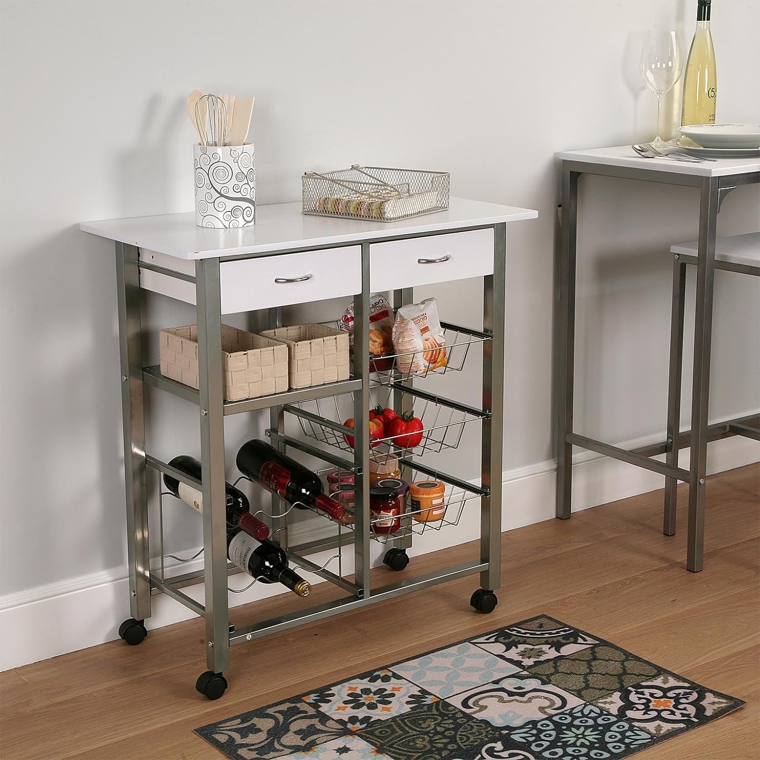 Versa Leicester Küchenwagen mit Rädern, Schubladen und Flaschenregal, Gemüsehändler, Küchenablage, M