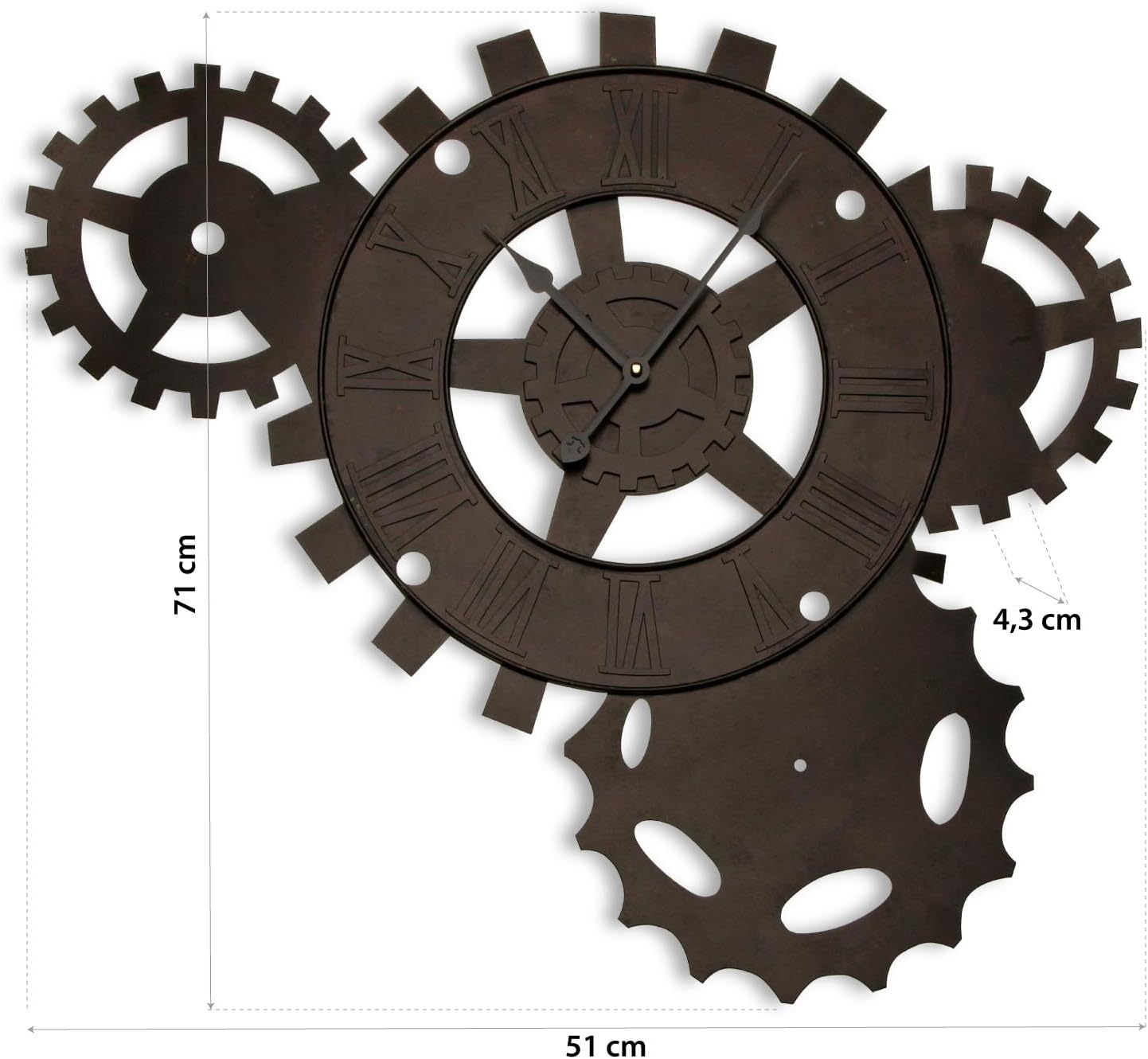 • EIGENSCHAFTEN - Wanduhr mit Getriebemechanismus für das Wohnzimmer, die Küche, das Büro oder andere Zimmer. Die Uhr besitzt eine kreisförmige Form und einen Durchmesser von 71 cm hoch, und hat eine Länge (Tiefe) von 4,3 cm, und eine Breite (von