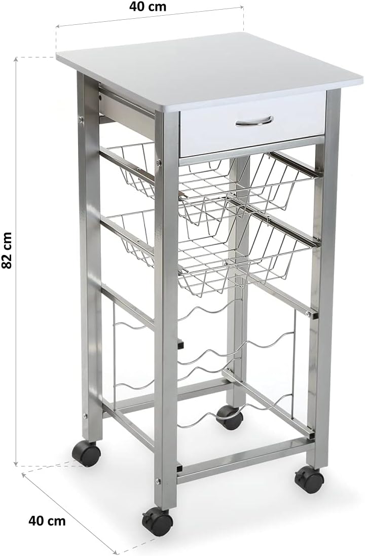 - VIELSEITIGES DESIGN - Mit dem Küchenwagen erhalten Sie etwas mehr Stauraum und Arbeitsfläche in Ihrer Küche. Verwenden Sie die Oberfläche, um Lebensmittel zuzubereiten, Dinge aufzubewahren oder einfach nur Dekoration zu präsentieren. Ablagefächer