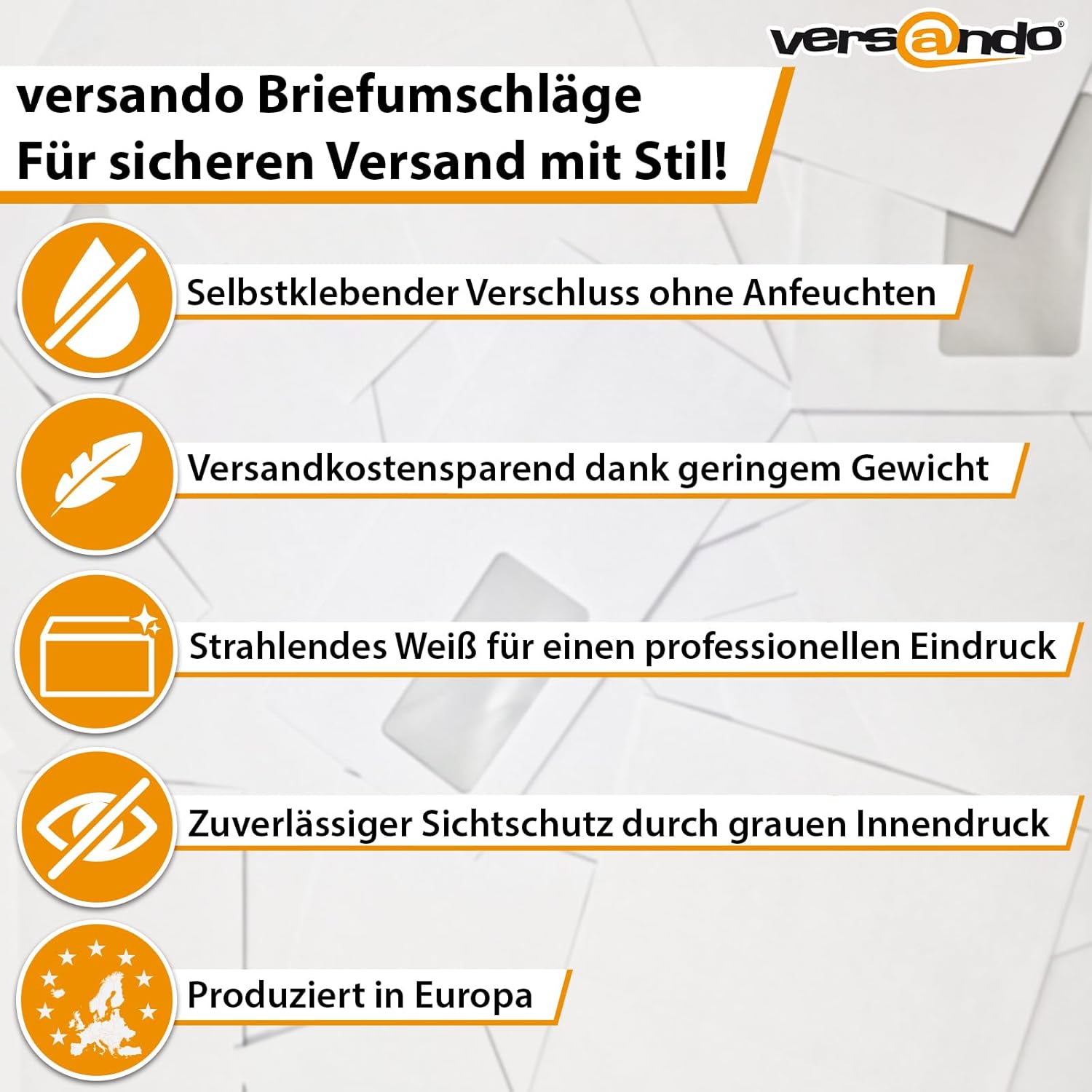 - 1.000 Stück (= 1 Karton)Format DIN lang mit Fenster 110 mm x 220 mm Grammatur 75g/m² selbstklebend