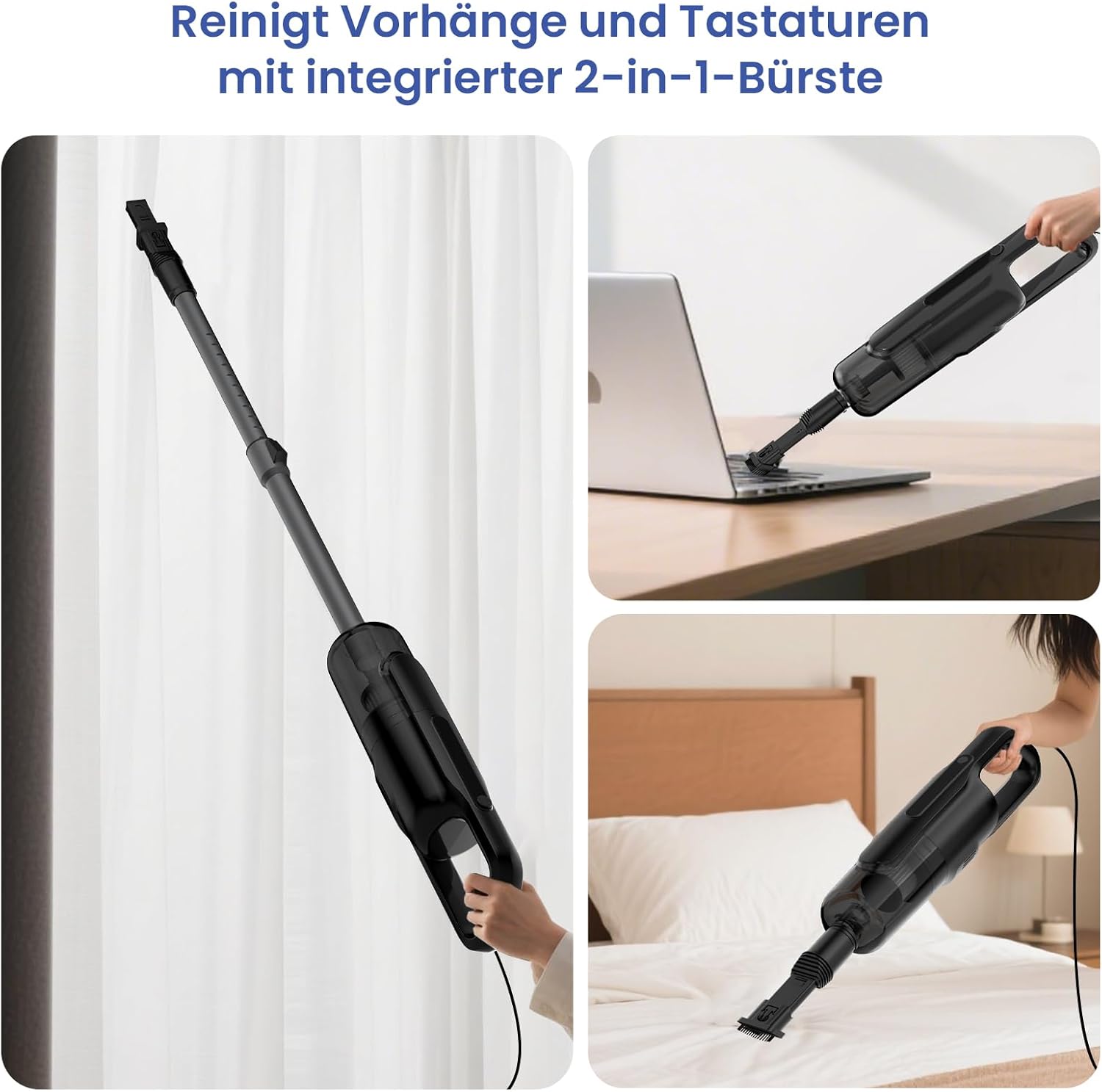 - 【Nur 1,5 kg & 2-in-1 Flexibilität】Ultraleichtes Design macht das Gerät zu einem praktischen Handstaubsauger mit Kabel, der sich per Aluminium-Teleskoprohr schnell vom Standgerät in ein Handgerät verwandeln lässt. Einhandbedienung, ideal beim