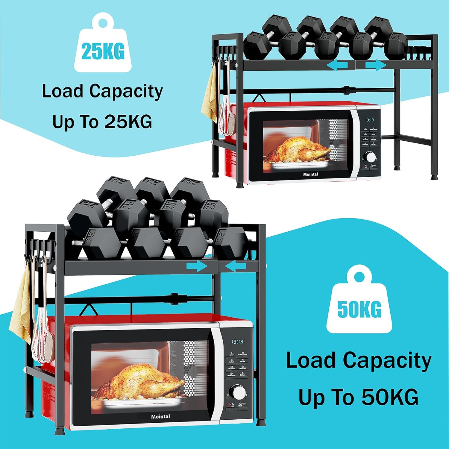 • ➡️【Verstellbare Grösse】Der Mointal Mikrowellenregal kann entsprechend Ihren Bedürfnissen in Länge und Höhe angepasst werden, sodass es für verschiedene Grössen von Mikrowellen und anderen Küchengeräten geeignet ist