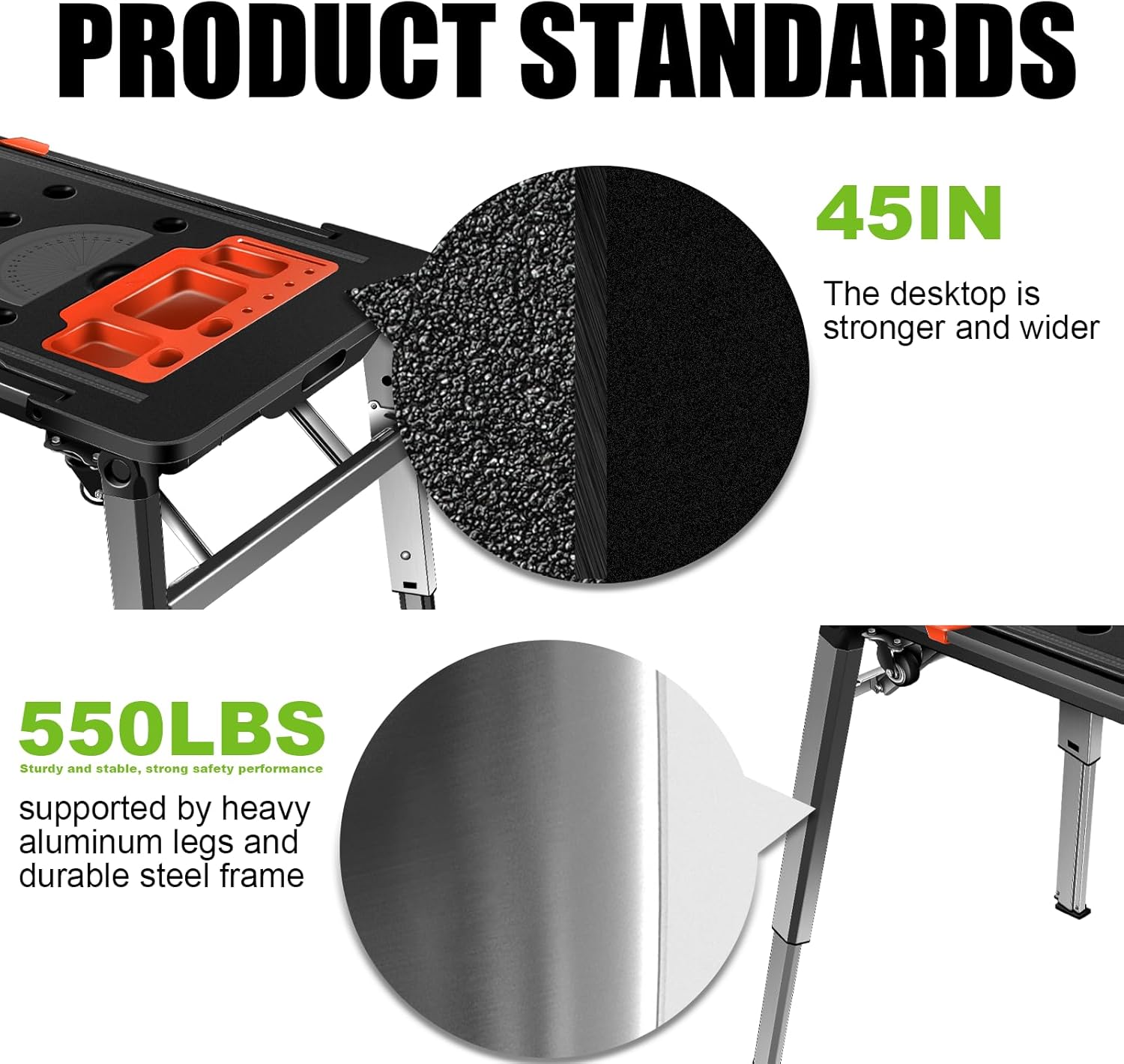 - PRODUKTPARAMETER: Tischgrösse: 48*108cm, Tragfähigkeit: 150 Kilogramm/330 Pfund. Verwendbar als Werkbank, Sägebock, Gerüst, Plattform, Autoreparaturplattform, Rollwagen, Trolley