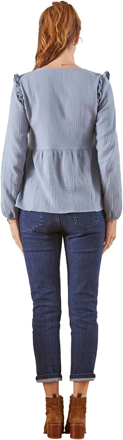 PRODUKTBESCHREIBUNGEN Bluse, Schwangerschaft und Stillzeit Besonderheiten: Feminine Umstandsbluse aus luftig-weichem Material Die Faltenpasse in der Taille schafft viel Platz für den wachsenden Babybauch Material: Musselin, 100 % Baumwolle Details: Rüschen am Ärmelansatz vorn und hinten V-Ausschnitt Knopfverschluss vorn Faltenpasse in der Taille Lange Ärmel mit anliegendem Abschluss Gerader Saum Hinweis: Bitte bestelle deine gewohnte Kleidergrösse. Den extra Platz für deinen Babybauch haben wir bereits mit eingerechnet. Die französischen Grössen entsprechen nicht den deutschen Grössen. Wenn du z.B. Grösse 36 bestellst, erhältst du die franz. Grösse 38. Im Bekleidungsteil findest du die deutsche Grösse im eingenähten internationalen Grössenetikett.