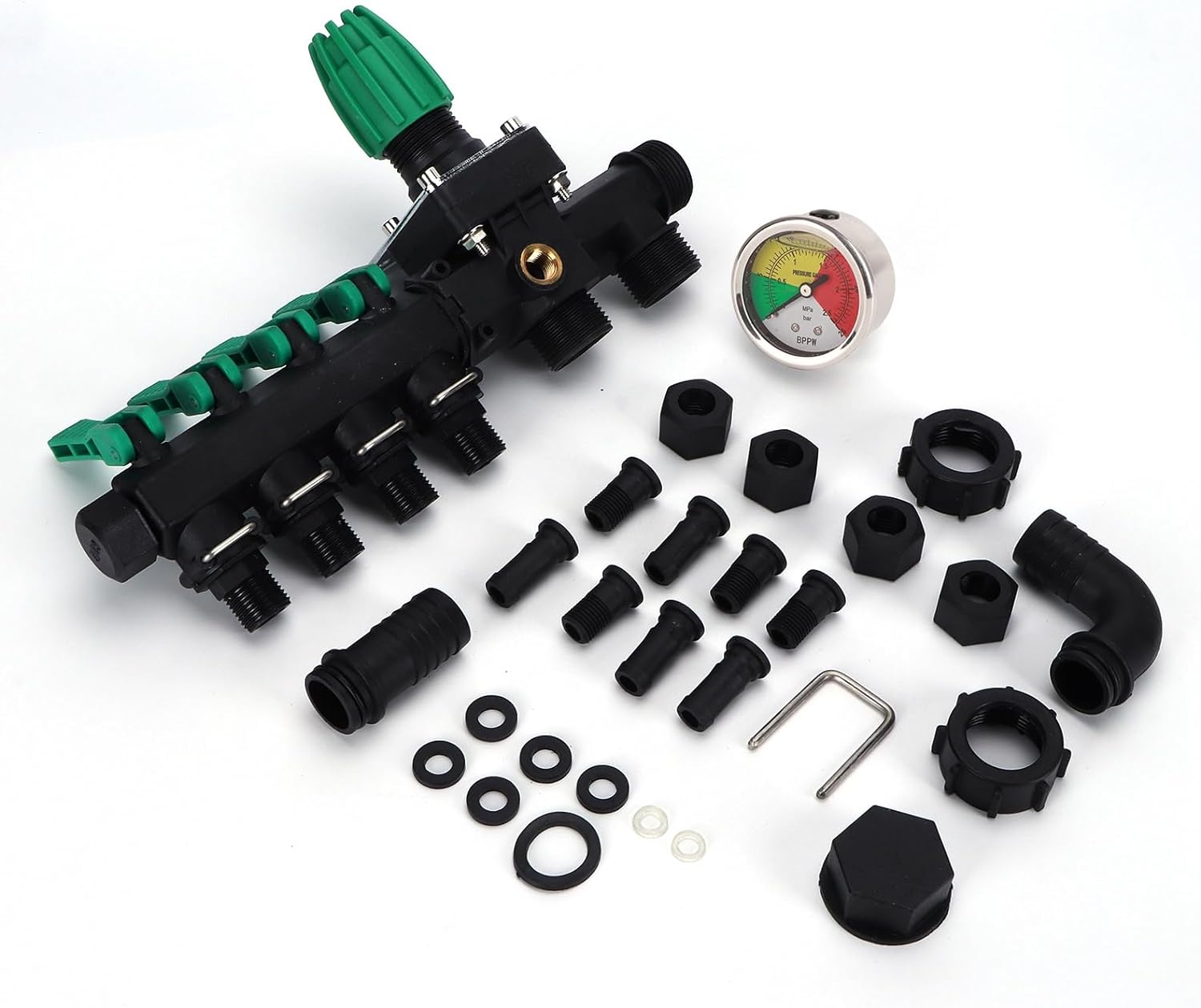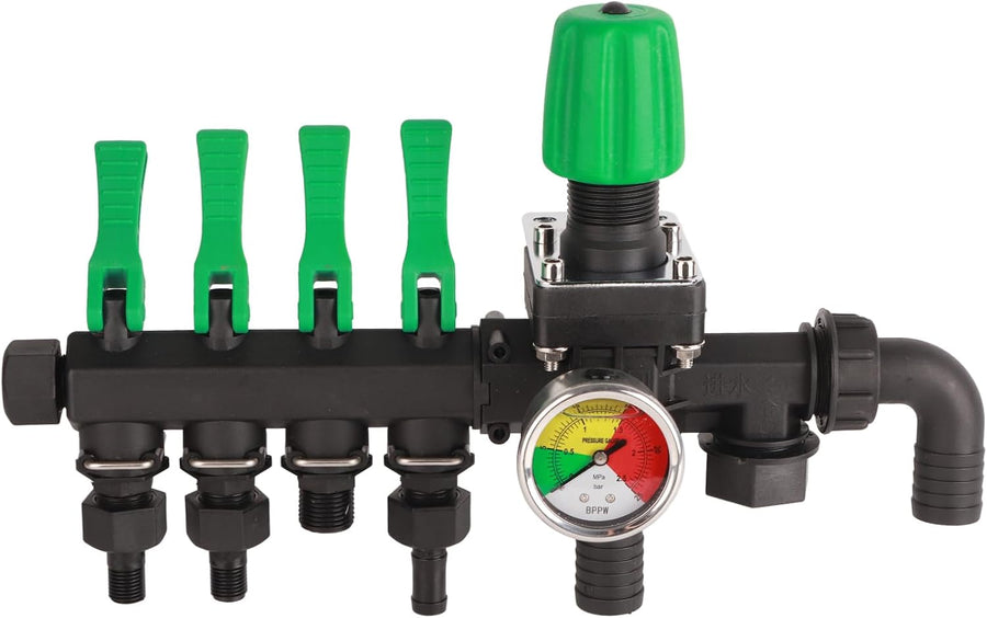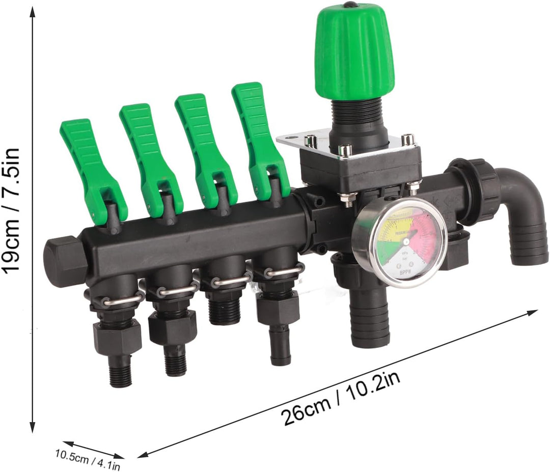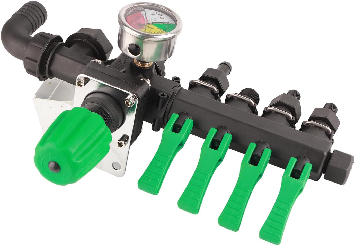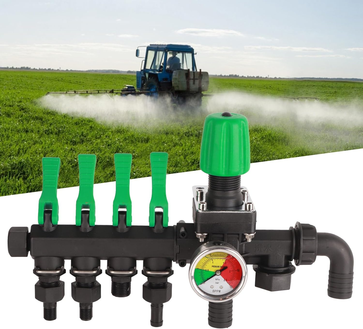 - Steuerventil für landwirtschaftliche Sprühgeröte, 4-Wege-Wasserteiler mit Ein-Aus-Ventil.