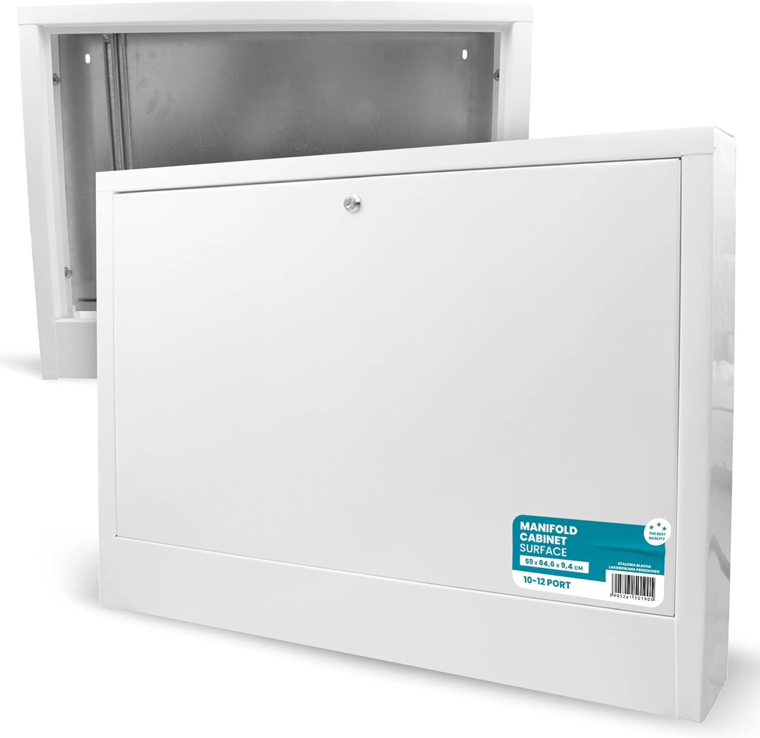 Verteilerschrank Zentrale Fussbodenheizung 10-12 Anschlüsse Aufputzgehäuse aus Weiss Pulverbeschicht