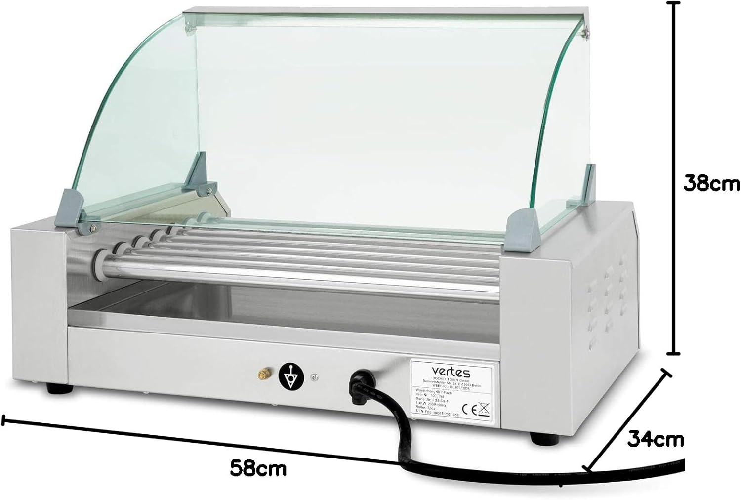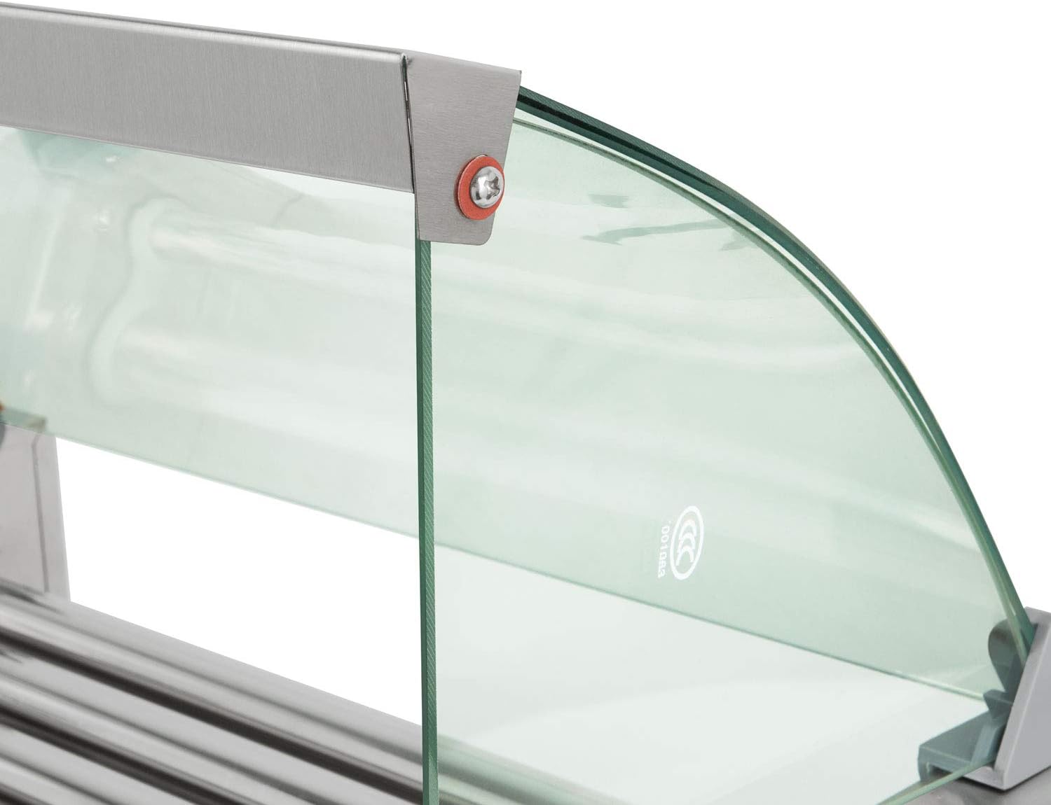 - VIELSEITIG: Die leichte Bedienung macht den Grill zum idealen Helfer im Restaurant, Imbiss und Catering. Durch die mitgelieferte Abdeckung aus gehärtetem Glas sind die Würstchen geschützt vor Schmutz und Wind: Super für Outdoor Events & Partys