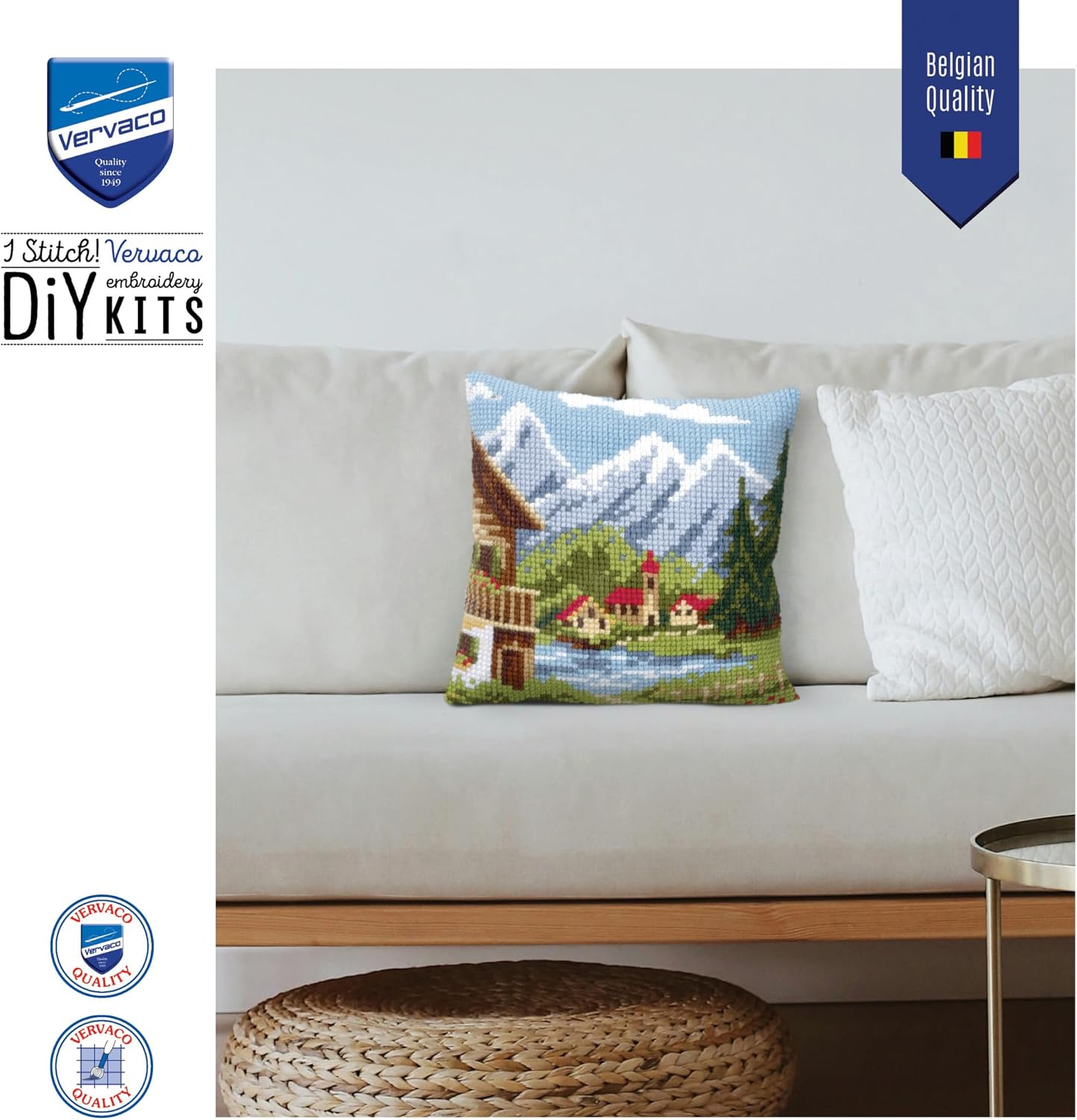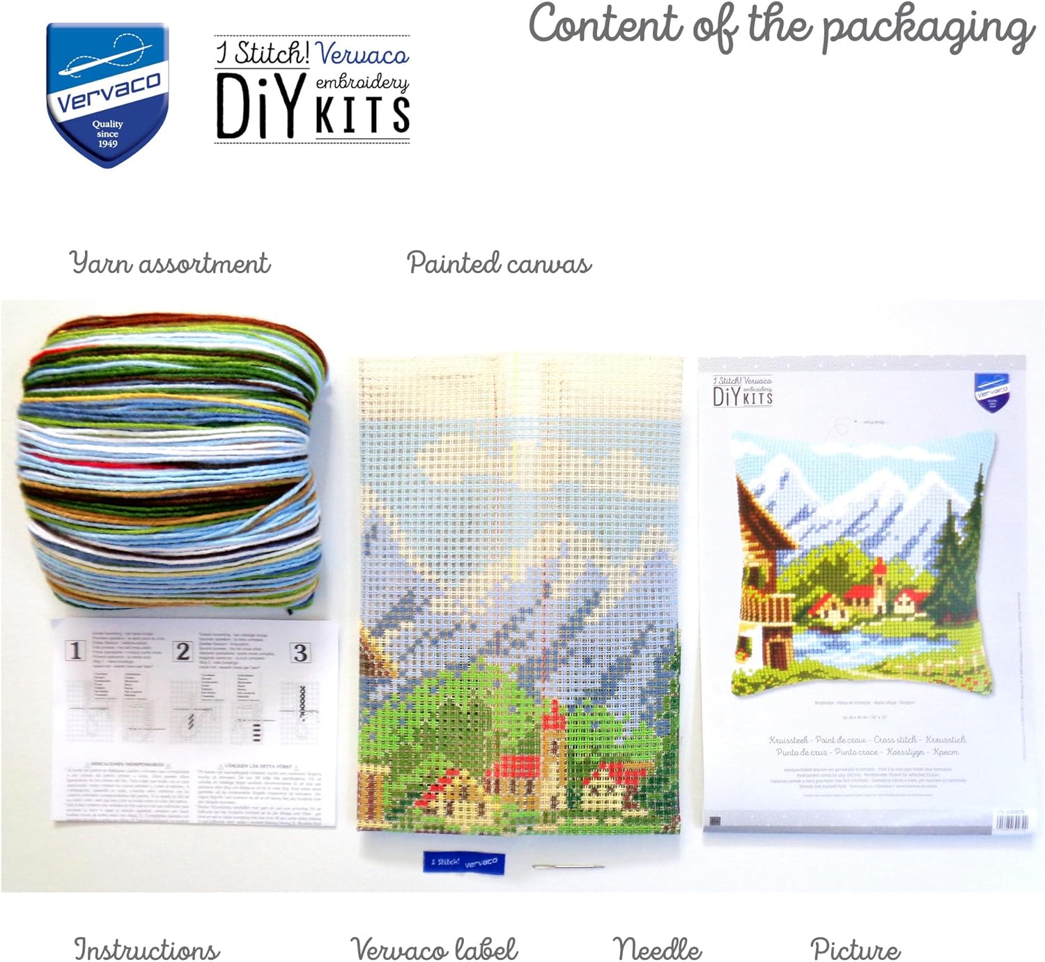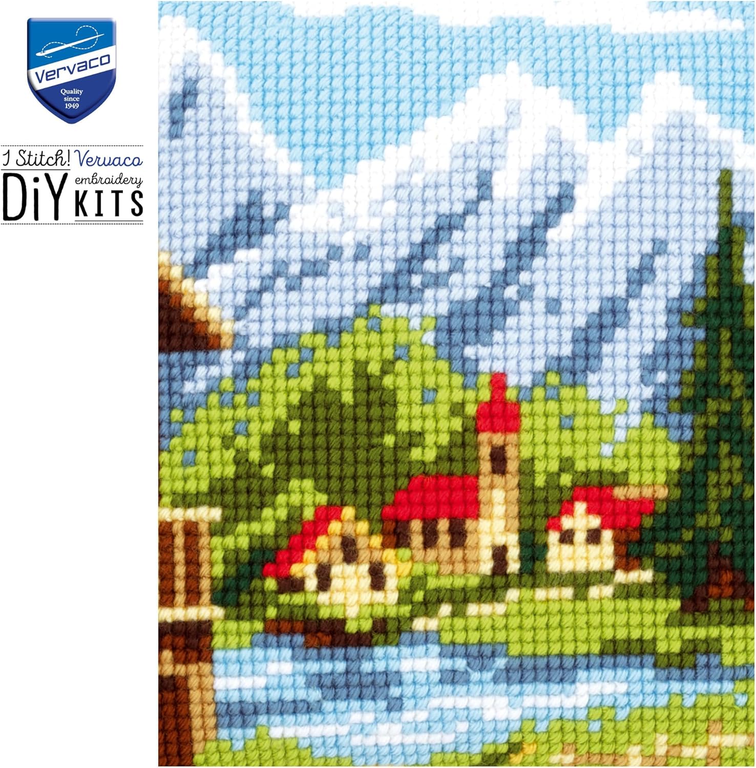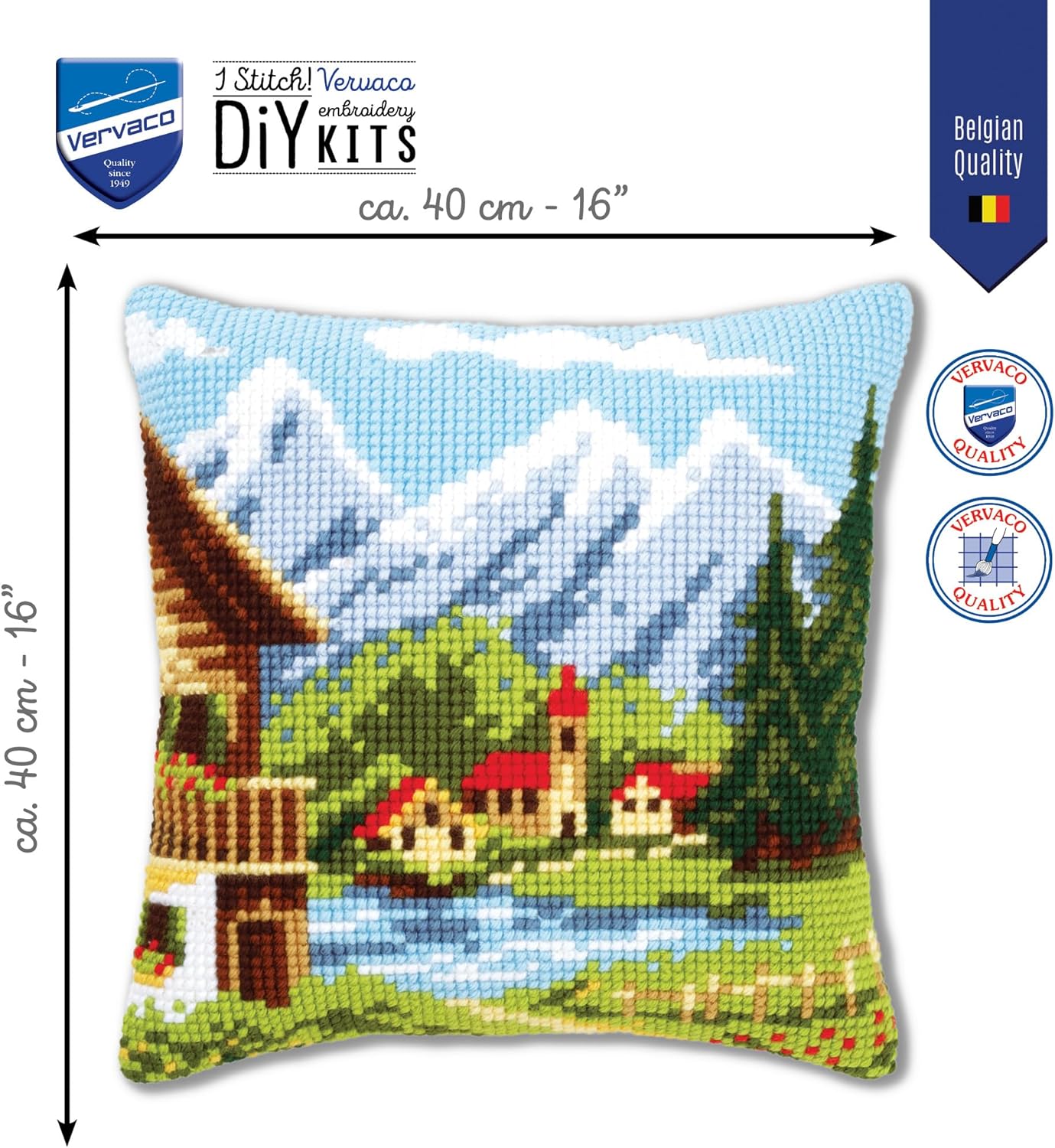 Vervaco Bergdorf Kreuzstichkissen/Stickkissen inklusive Material, Baumwolle, Mehrfarbig, 40 x 40 x 0