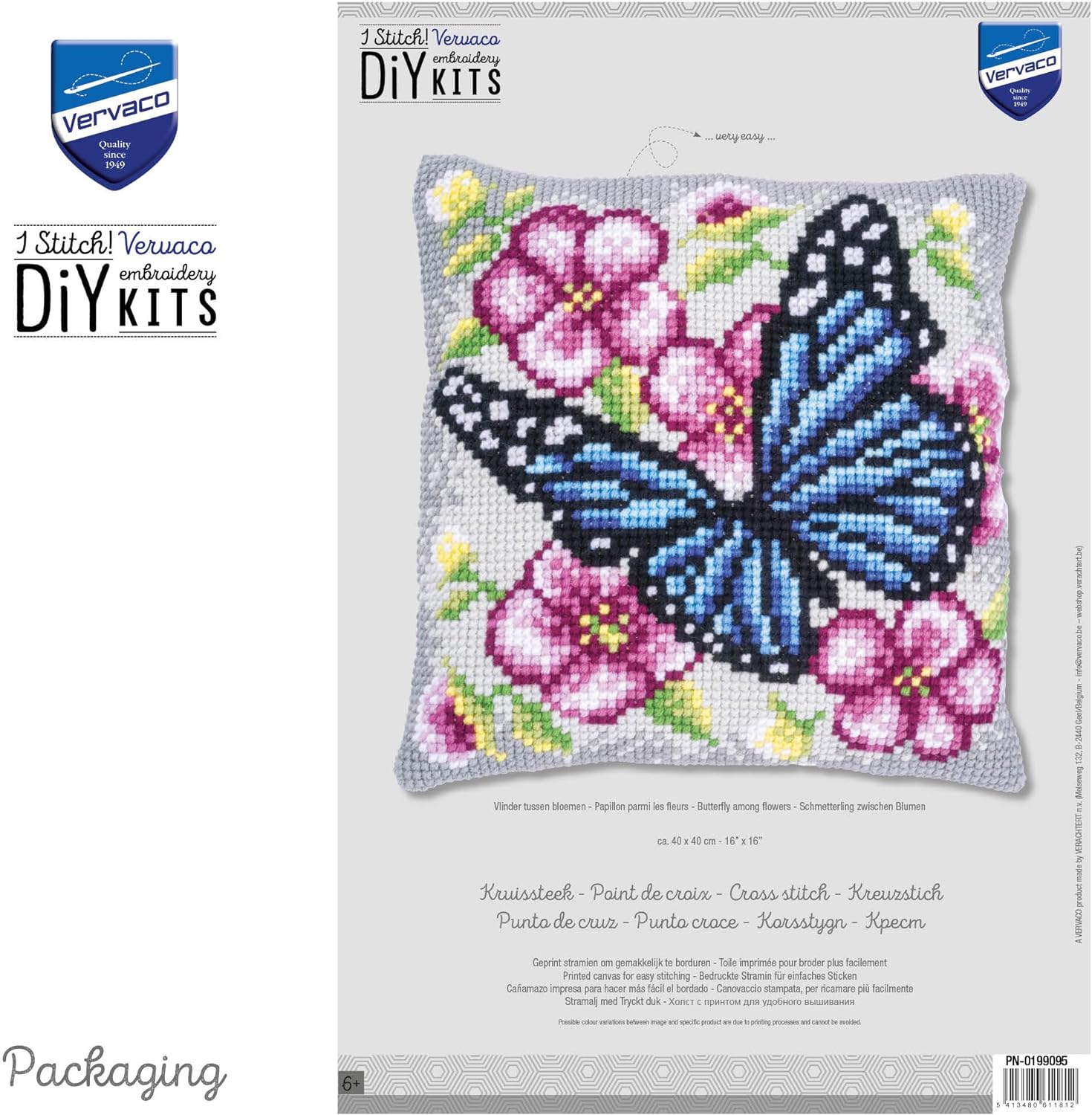 Vervaco Kreuzstich-Kissen, Schmetterling, Ecru, ca. 40 x 40 cm