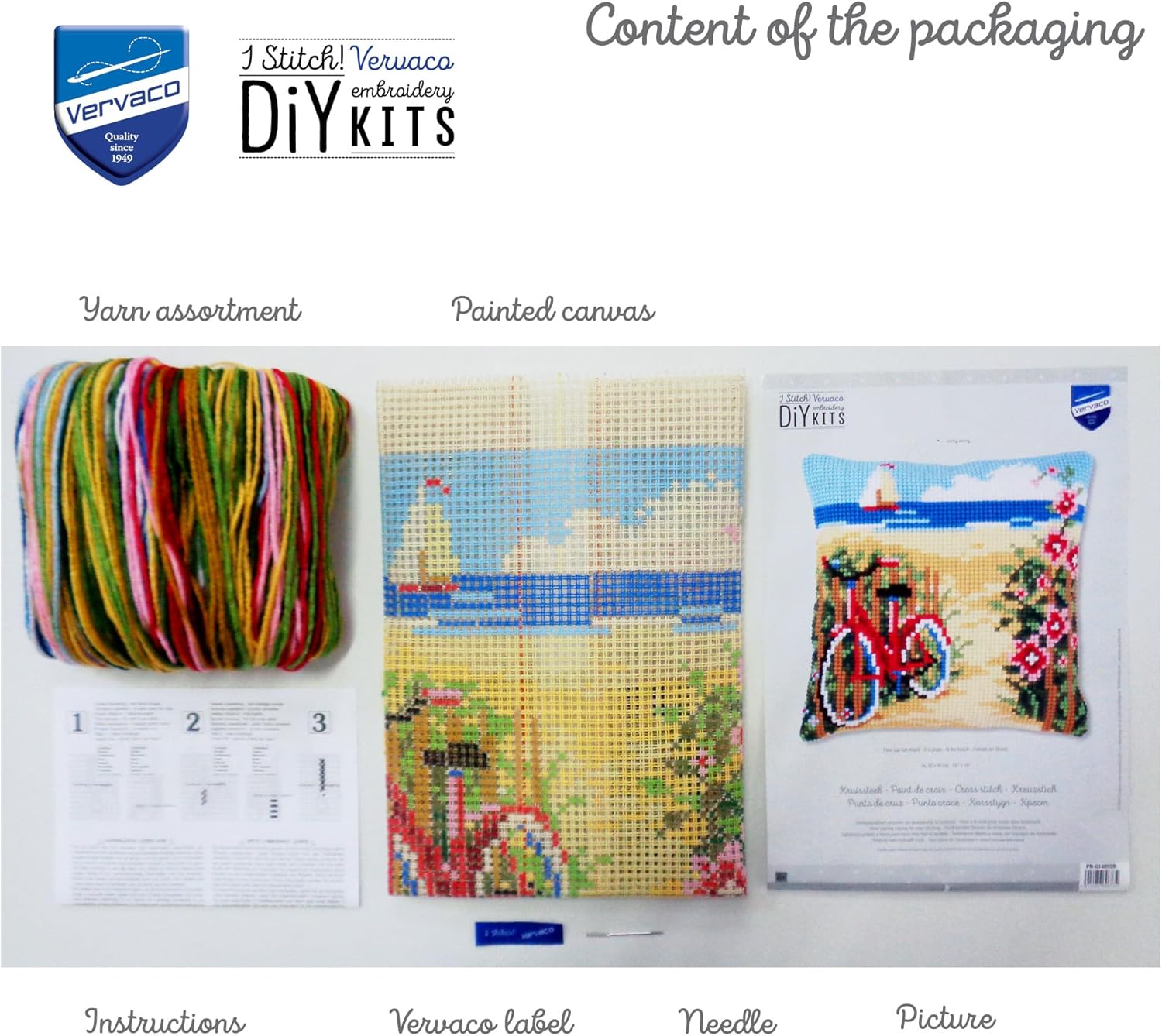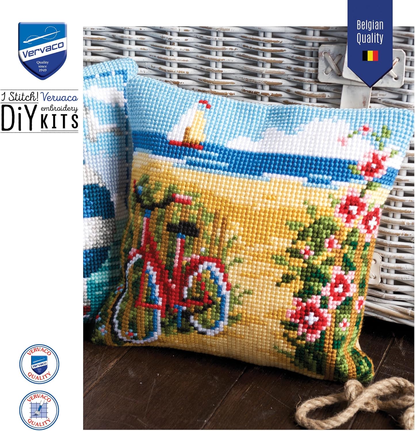Vervaco Kreuzstichkissen Fahrrad am Strand, Stickbild vorgezeichnet Kreuzstichpackung Kissen, vorbez