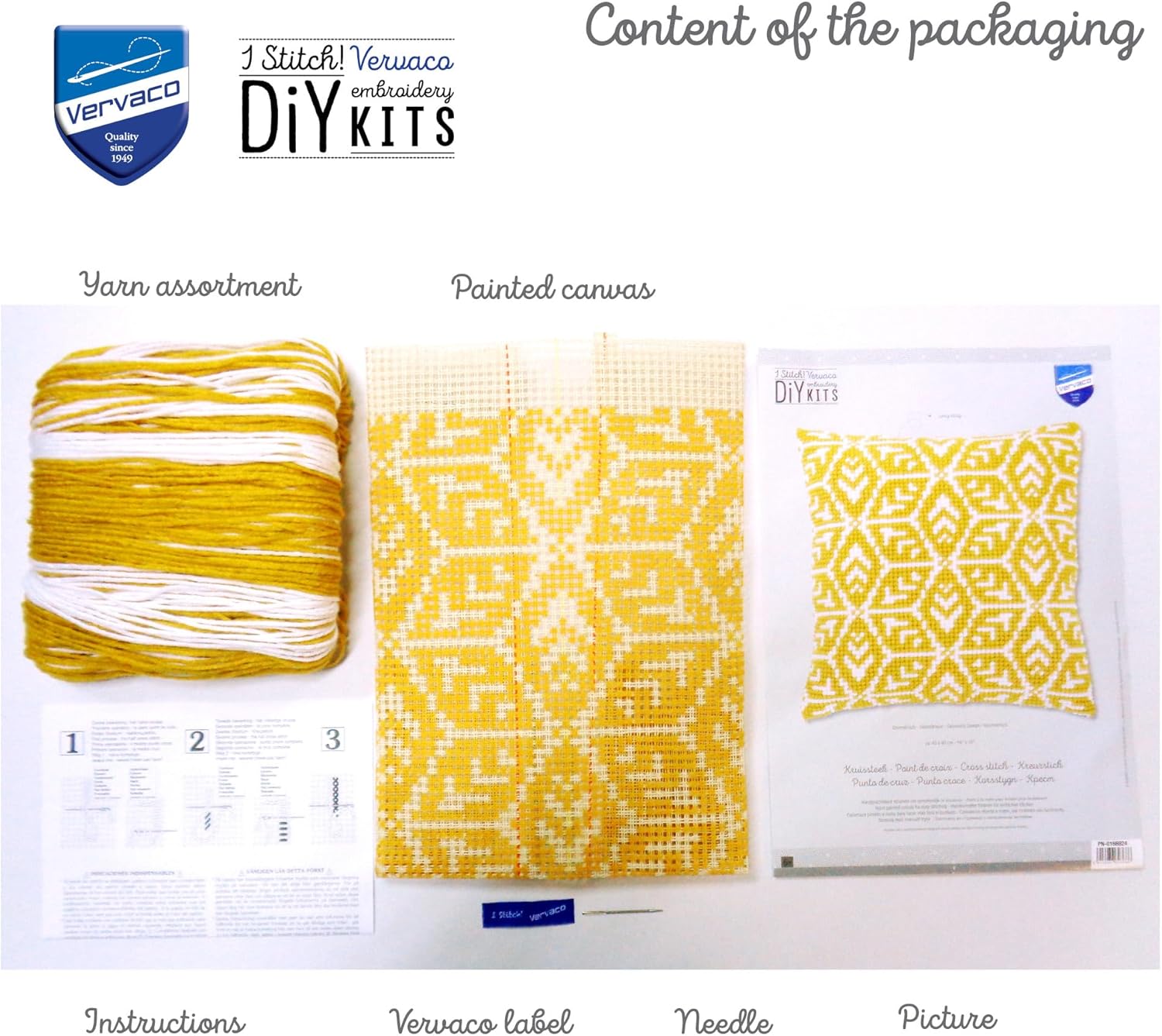 Vervaco Kreuzstichkissen Geometrisch Kreuzstichpackung, Stramin, Weiss, 40 x 40 x 0,3 cm