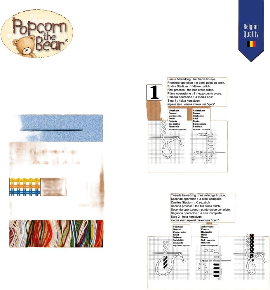 - Inklusive handbemaltem groben Stramin aus 100% Baumwolle, Stickwolle aus 100% Acryl sowie Nadel und Anleitung.