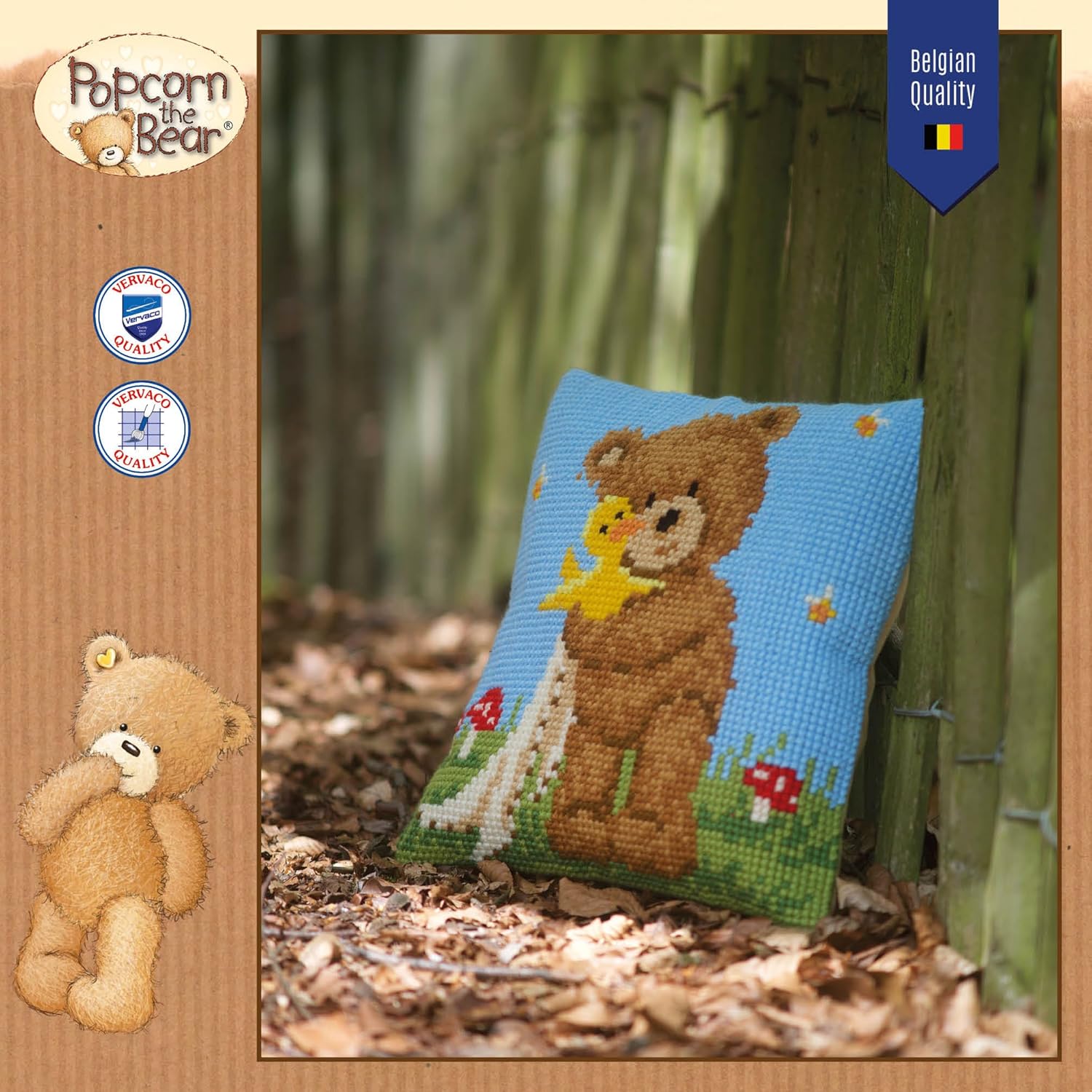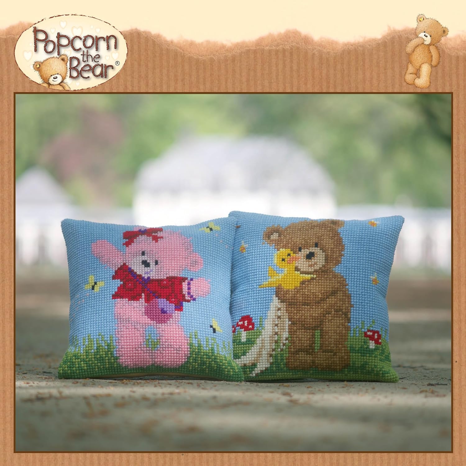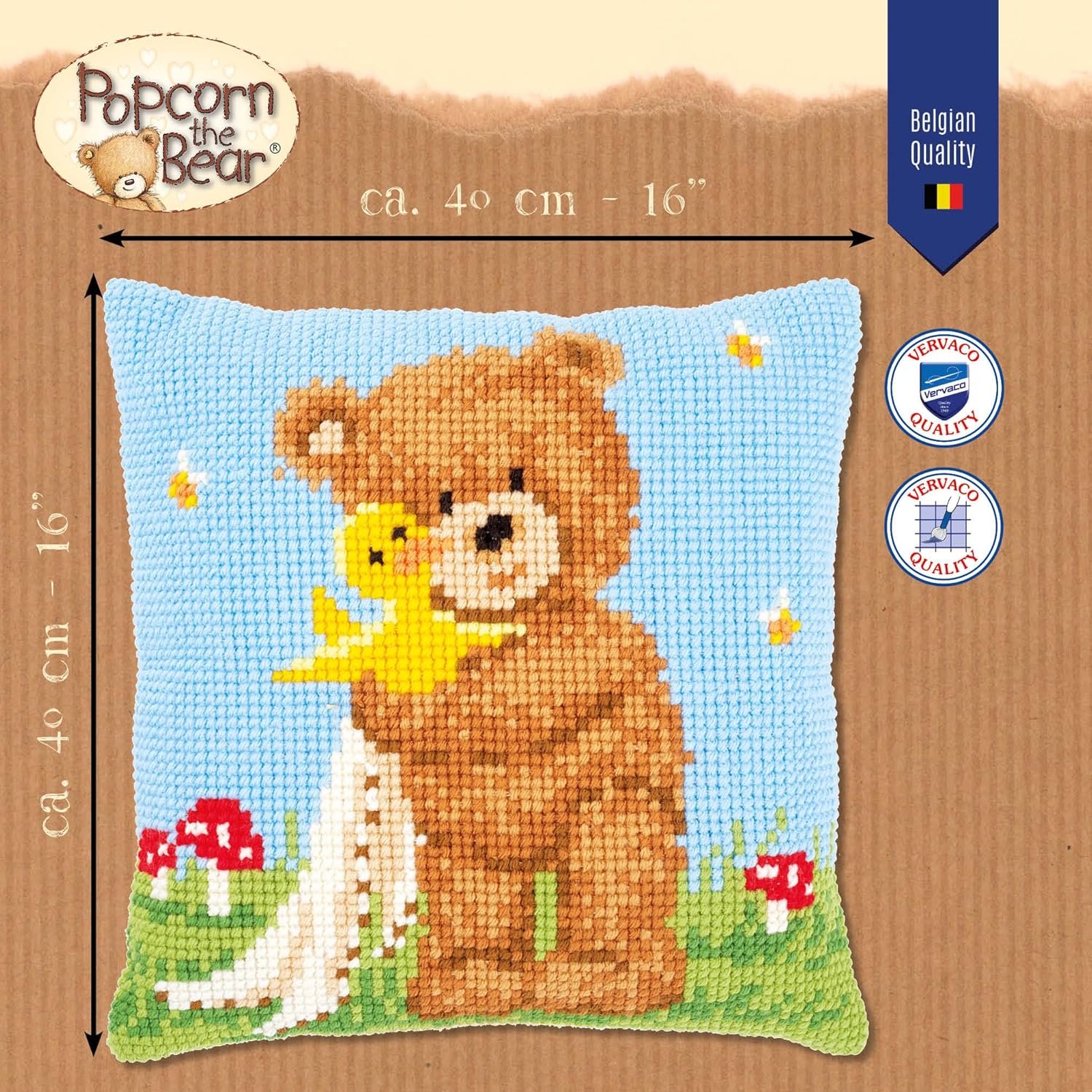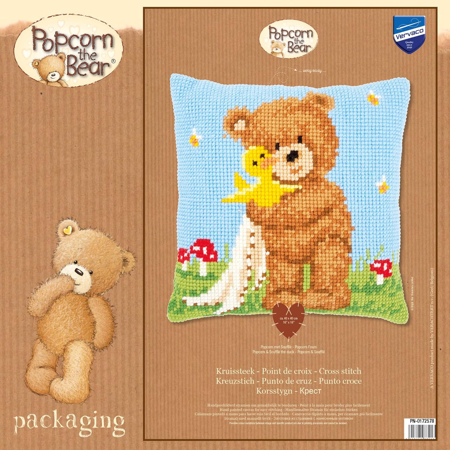 Vervaco PN-0172578 Kreuzstichkissen Popcorn & Soufflé Kreuzstichset, Baumwolle, mehrfarbig, 40 x 40