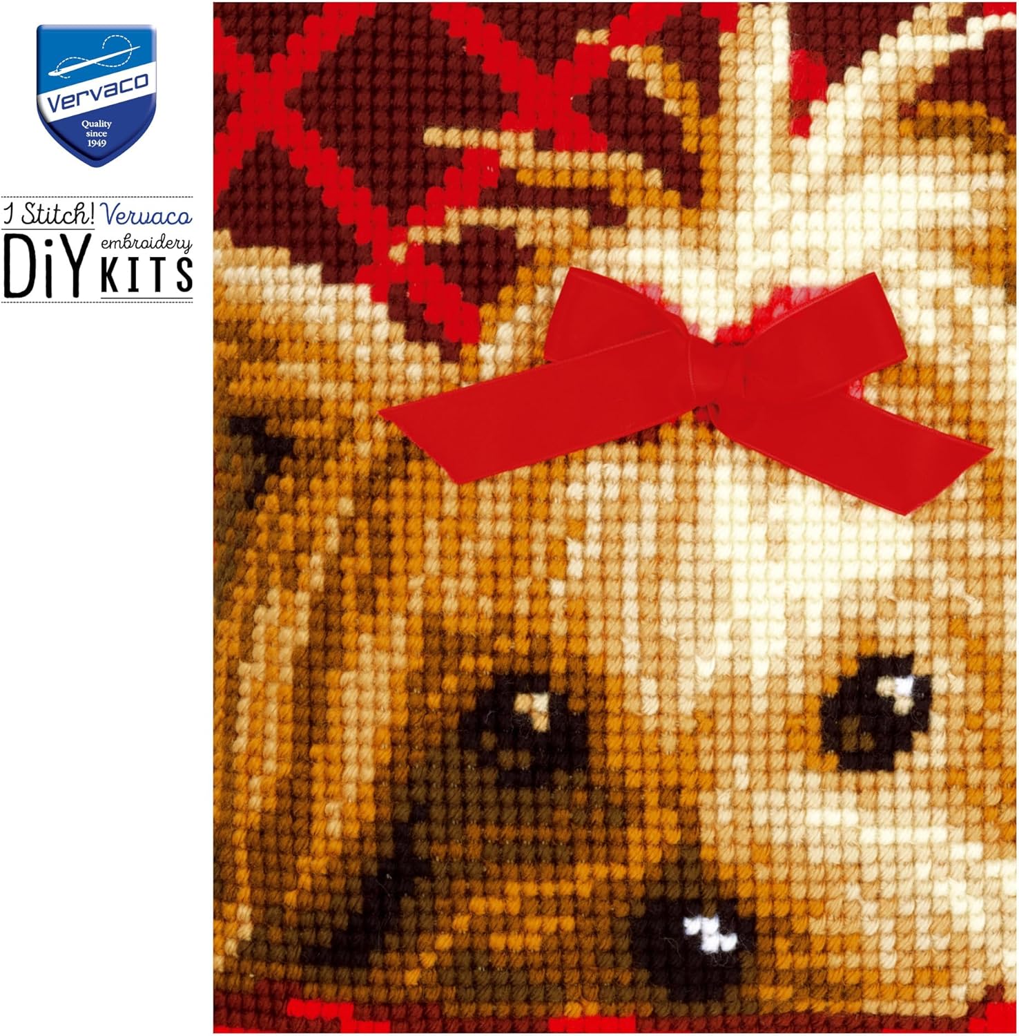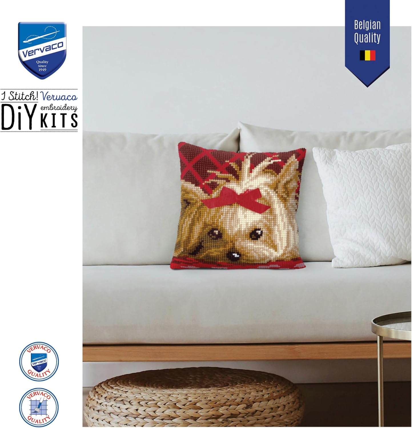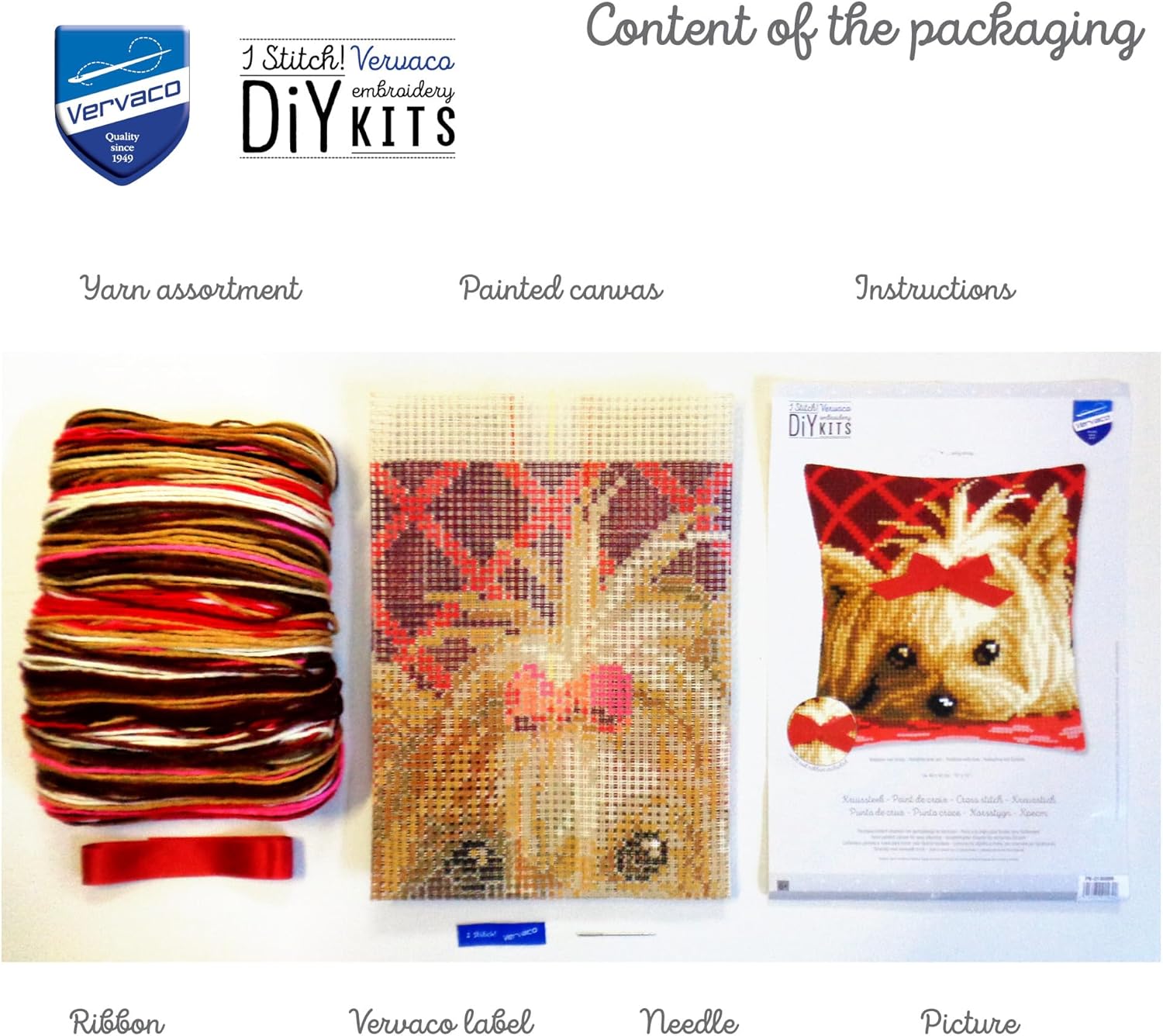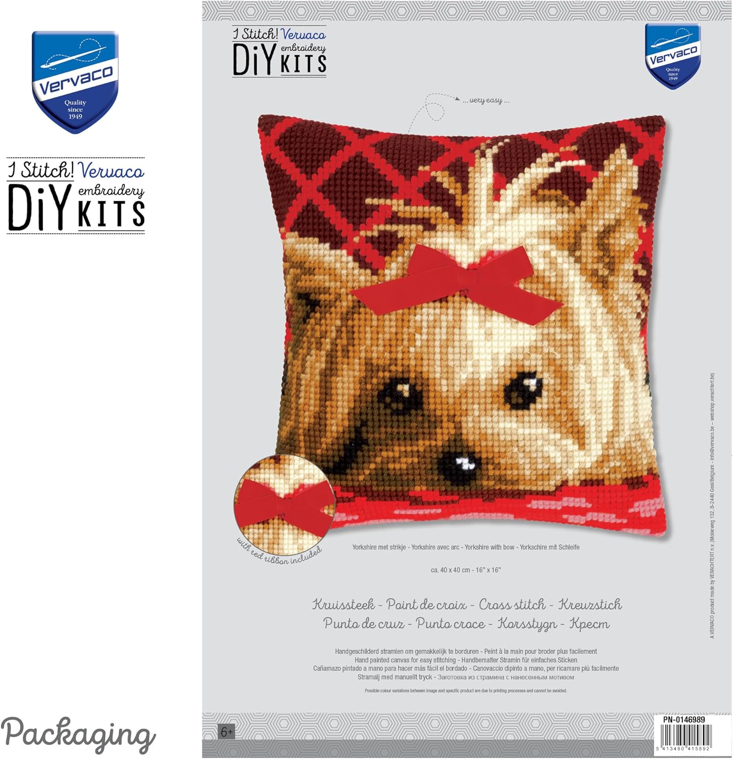 Vervaco Yorkshire mit Schleife Kreuzstichkissen/Stickkissen vorgedruckt, Baumwolle, Mehrfarbig, 40 x