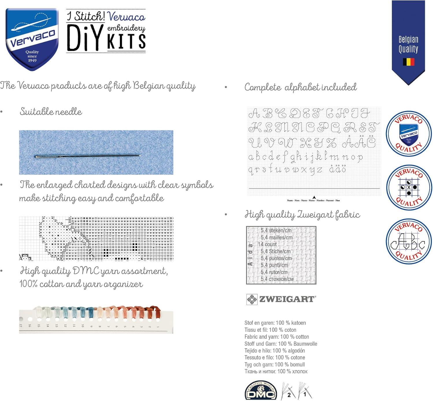 - Inklusive Aida aus 100% Baumwolle 5,4 Stiche/cm, Garn aus 100% Baumwolle sowie Nadel und Anleitung.