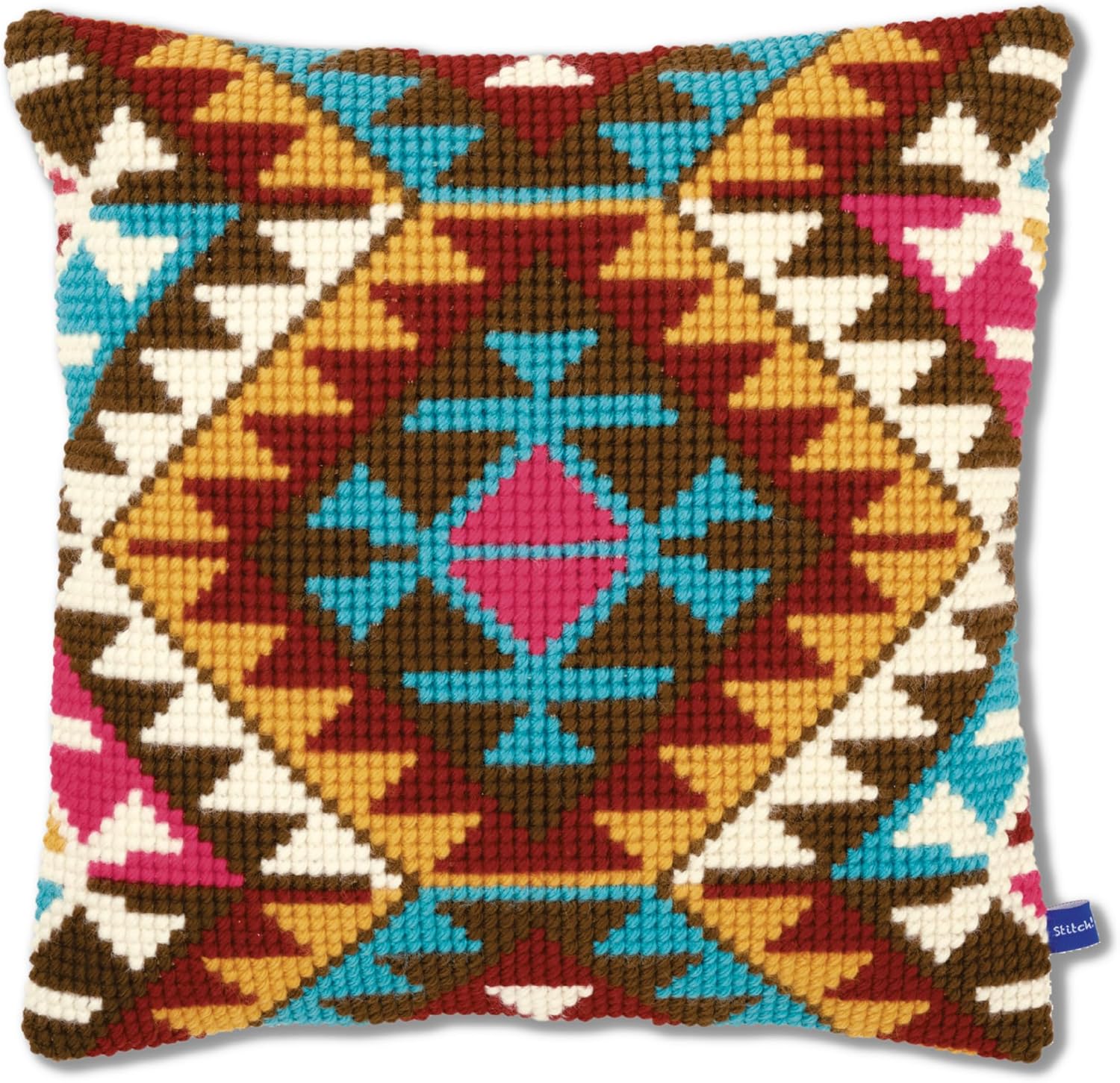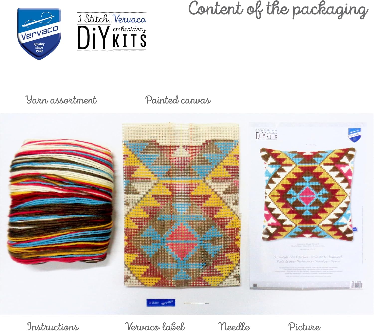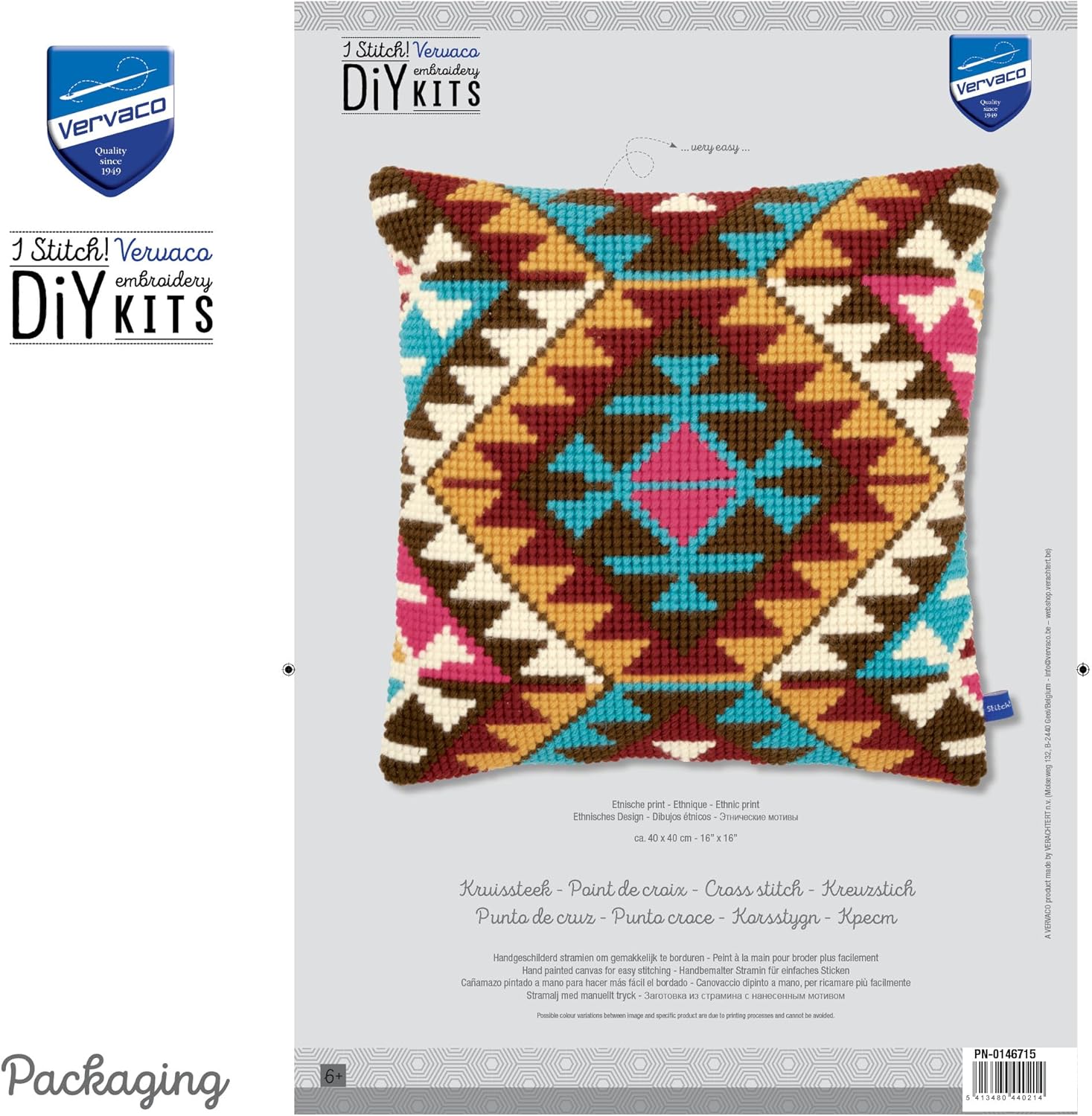 Vervaco Ethnisches Design Kreuzstichkissen/Stickkissen vorgedruckt, Baumwolle, Mehrfarbig, 40 x 40 x