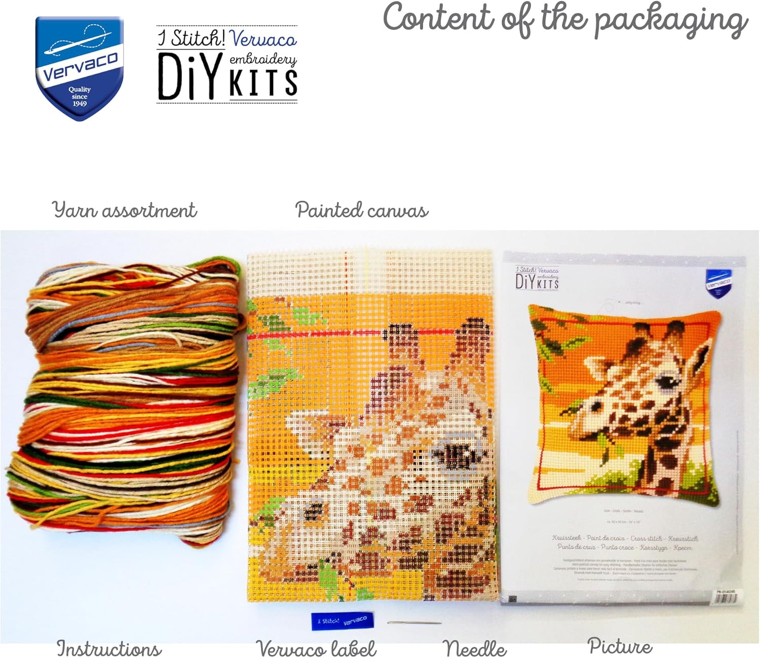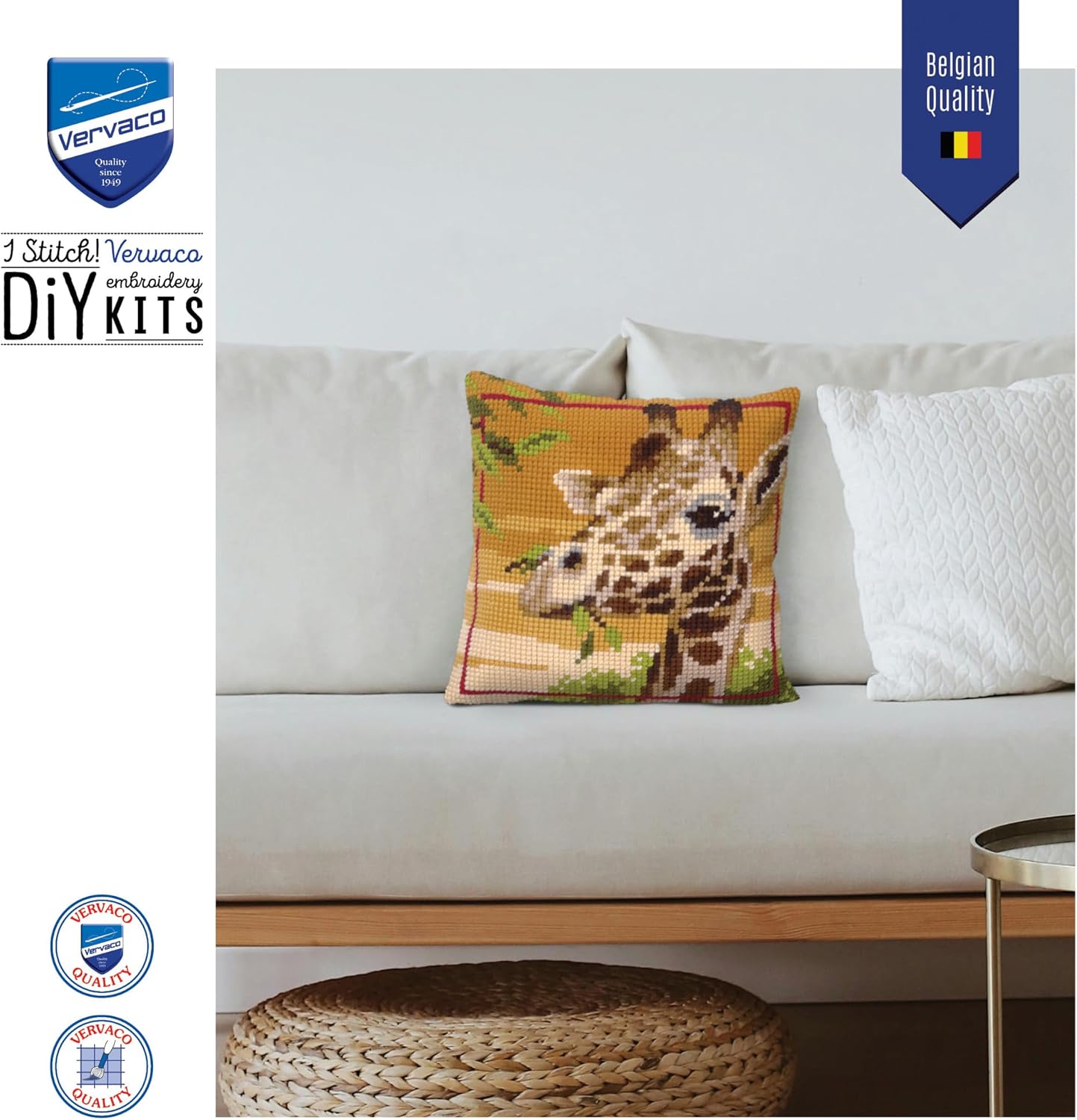 Vervaco Giraffe Kreuzstichkissen/Stickkissen vorgedruckt, Baumwolle, Mehrfarbig, 40 x 40 x 0.3 cm