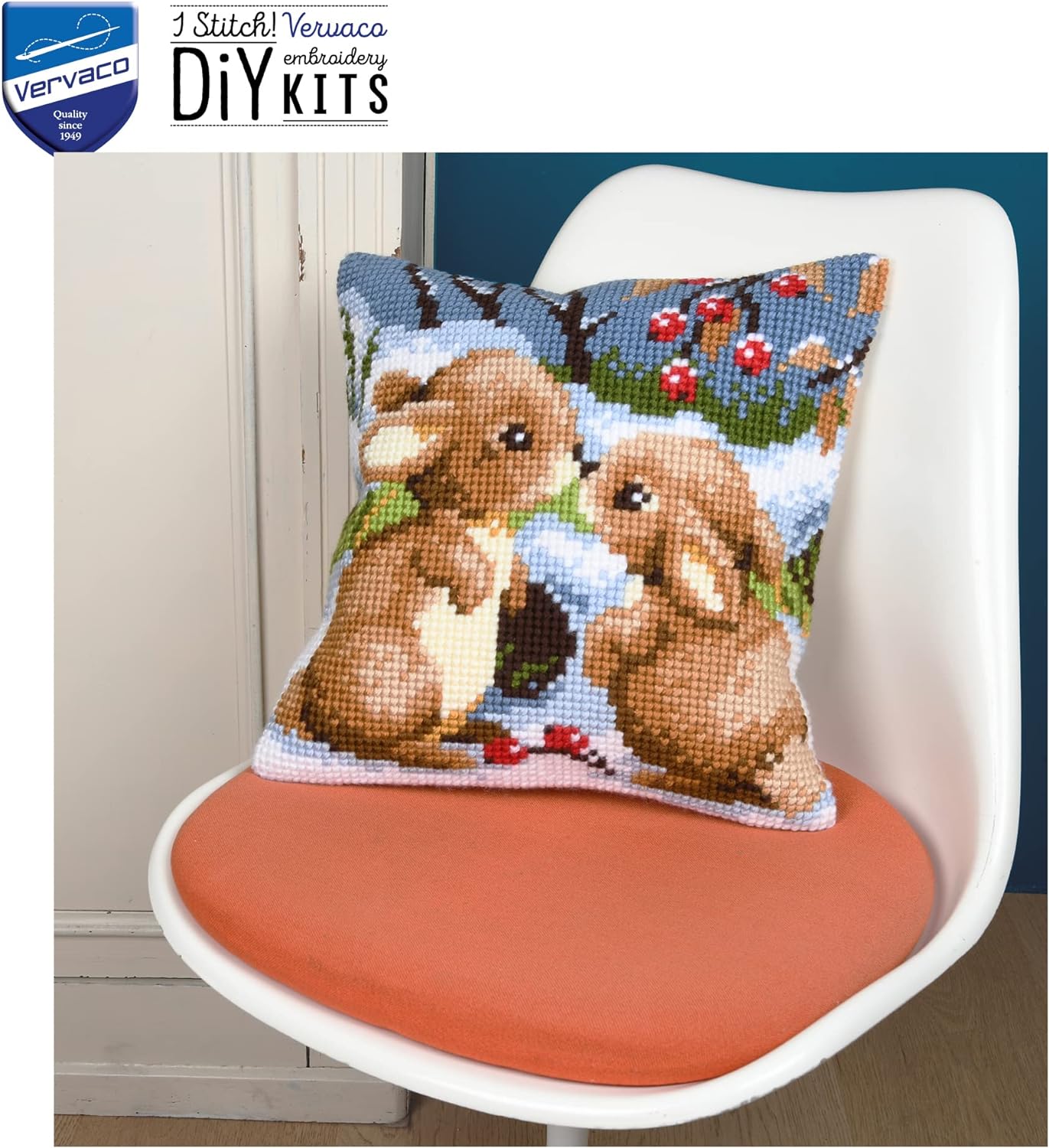 Vervaco Kreuzstich Stickpackungen Kissen Front zum Selbersticken mit Stickbild auf 100% Baumwoll Sto