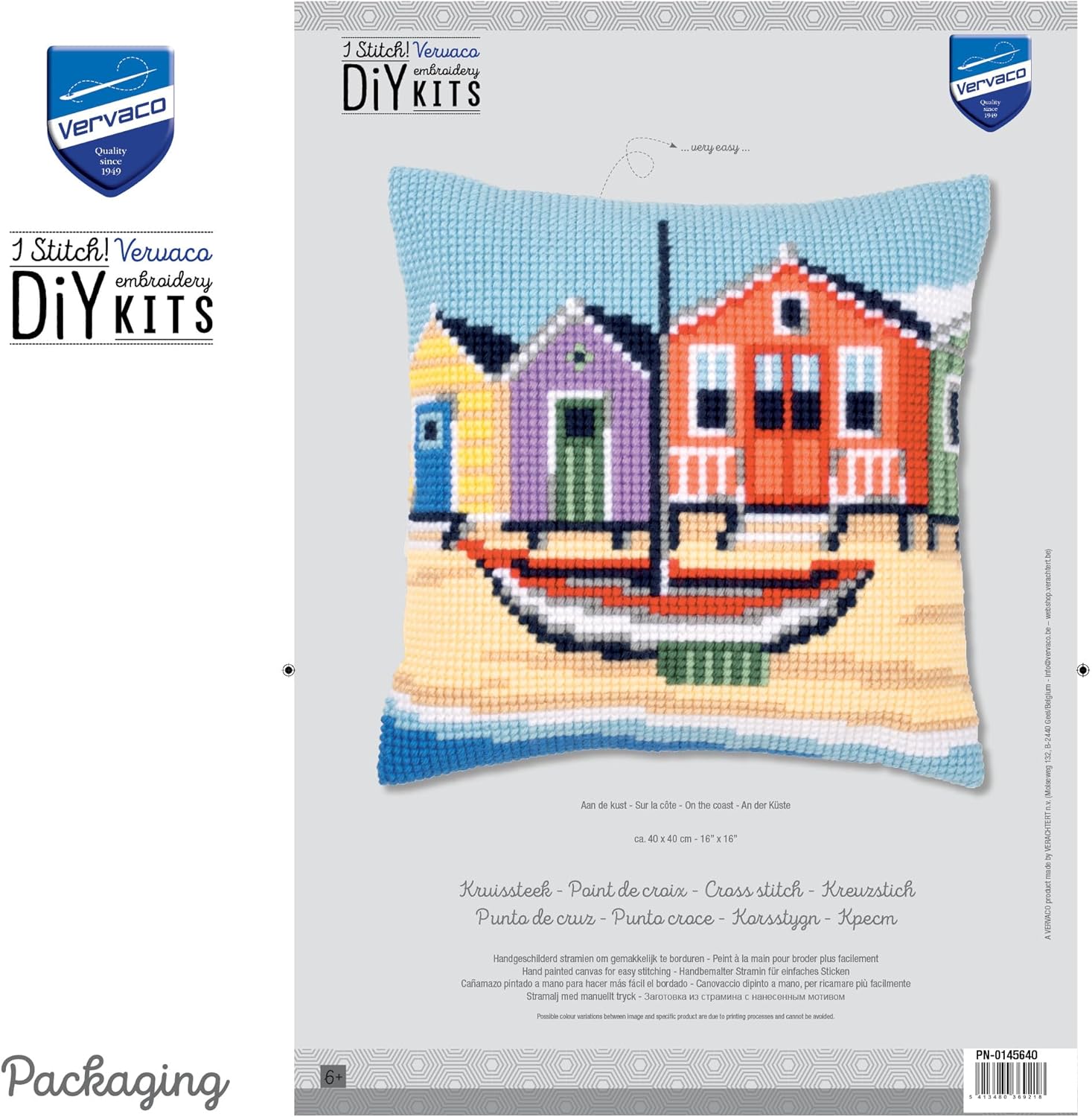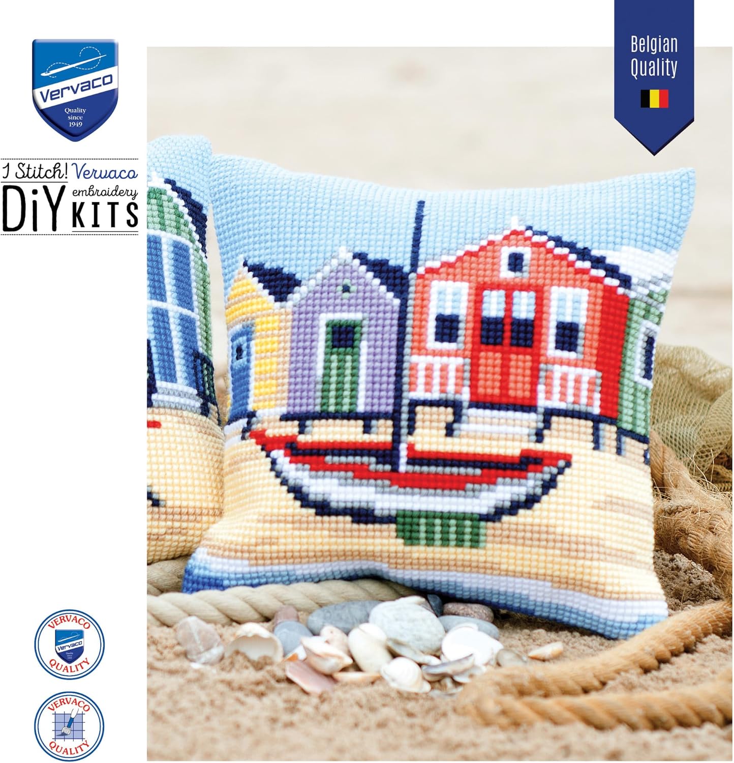 Vervaco Küste Kreuzstichkissen/Stickkissen vorgedruckt, Baumwolle, Mehrfarbig, 40 x 40 x 0.3 cm
