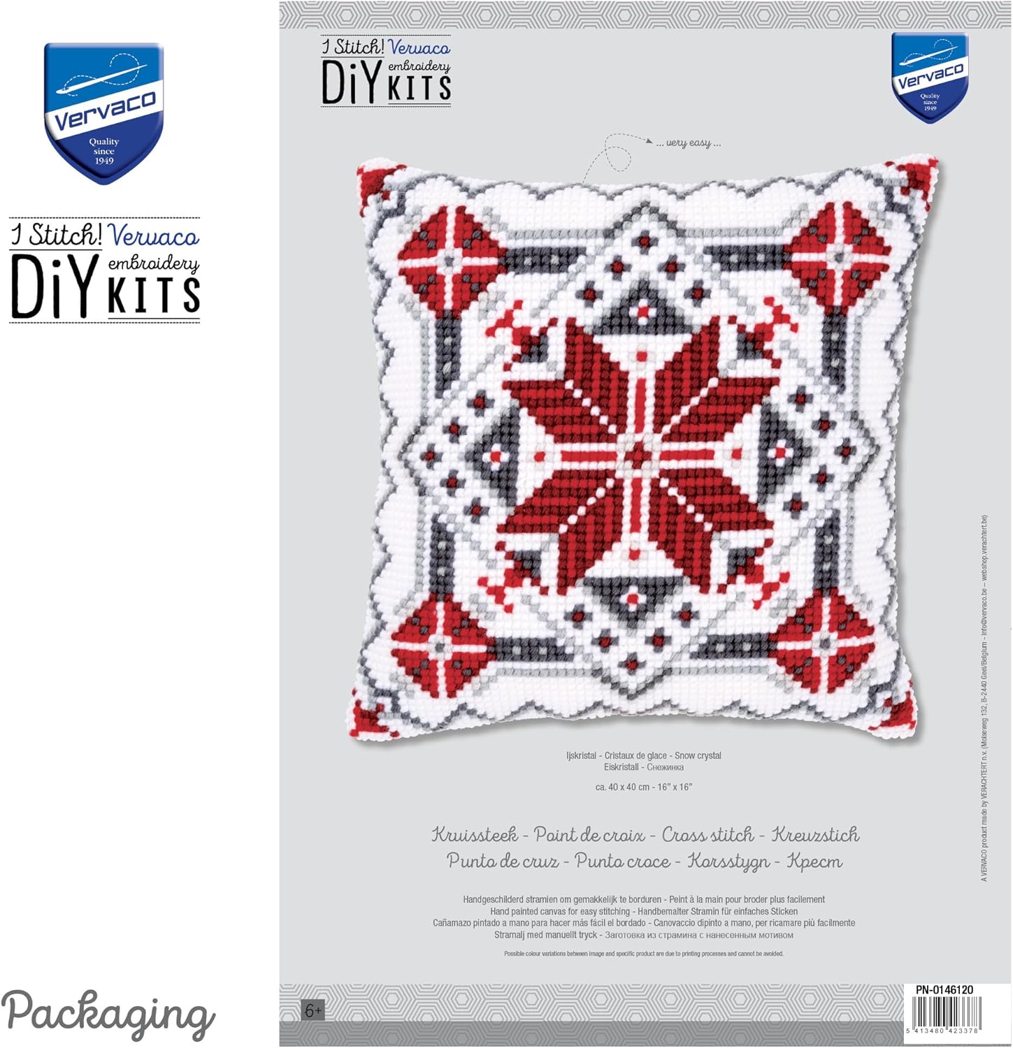 Vervaco Winterlich Kreuzstichkissen/Stickkissen inklusive Material, Baumwolle, Mehrfarbig, 40 x 40 x