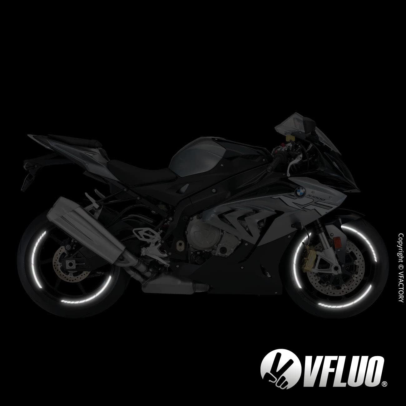 • BESTE QUALITÄT: VFLUO Motorrad-Felgenaufkleber sind mit der 3M-Technology ausgestattet, die beste auf dem Markt, für leuchtende Farben bei Tag und gute Sichtbarkeit bis zu 160 m be Nacht und bei schlechtem Wetter. Witterungsbeständig und garantiert