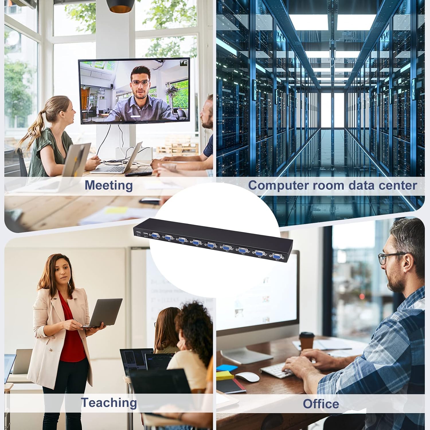 - [ High Quality KVM Switch VGA ]: Der 8 port USB VGA KVM Switch ermöglicht es Ihnen, 8 Computer mit einem einzigen Befehlssatz (Maus, Tastatur, Drucker und Monitor) zu steuern. Die benötigten KVM-Eingangskabel sind im Lieferumfang enthalten, die VGA-