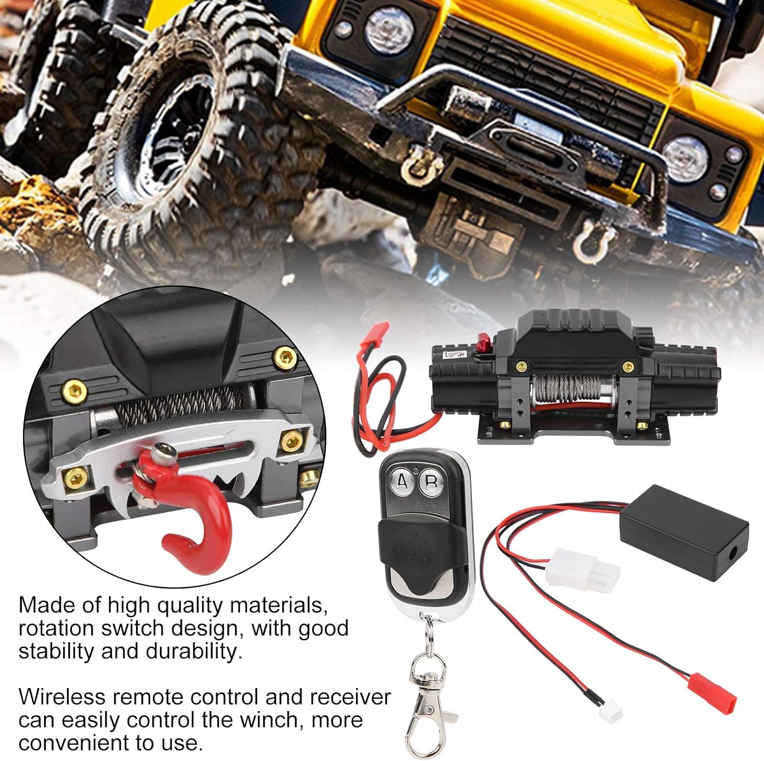- ÜBERLEGENE QUALITÄT: RC Automatic Winch besteht aus hochwertigen Materialien, Rotationsschalter-Design, mit guter Stabilität und Haltbarkeit.