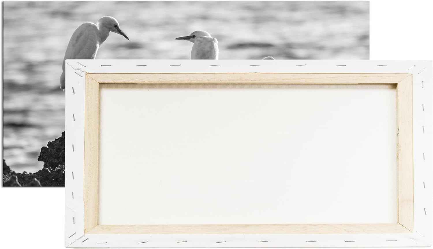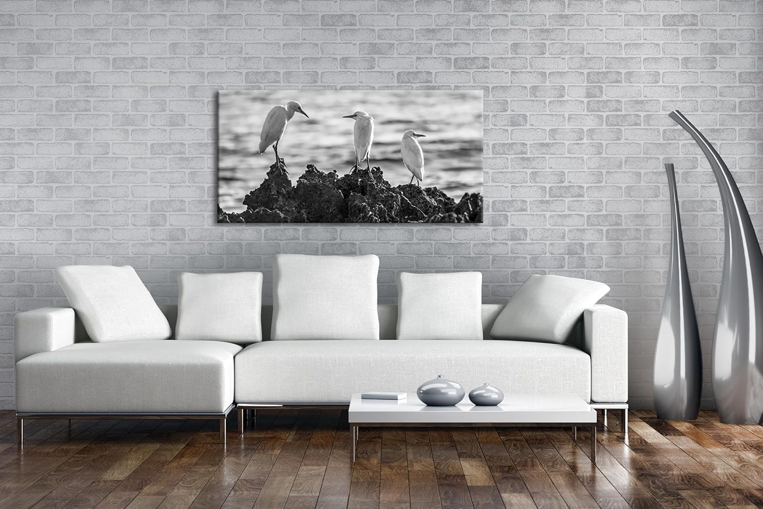 Vögel des Meeres Panorama 60x30 cm Effekt: Schwarz/Weiss als Leinwandbild, Motiv fertig gerahmt auf