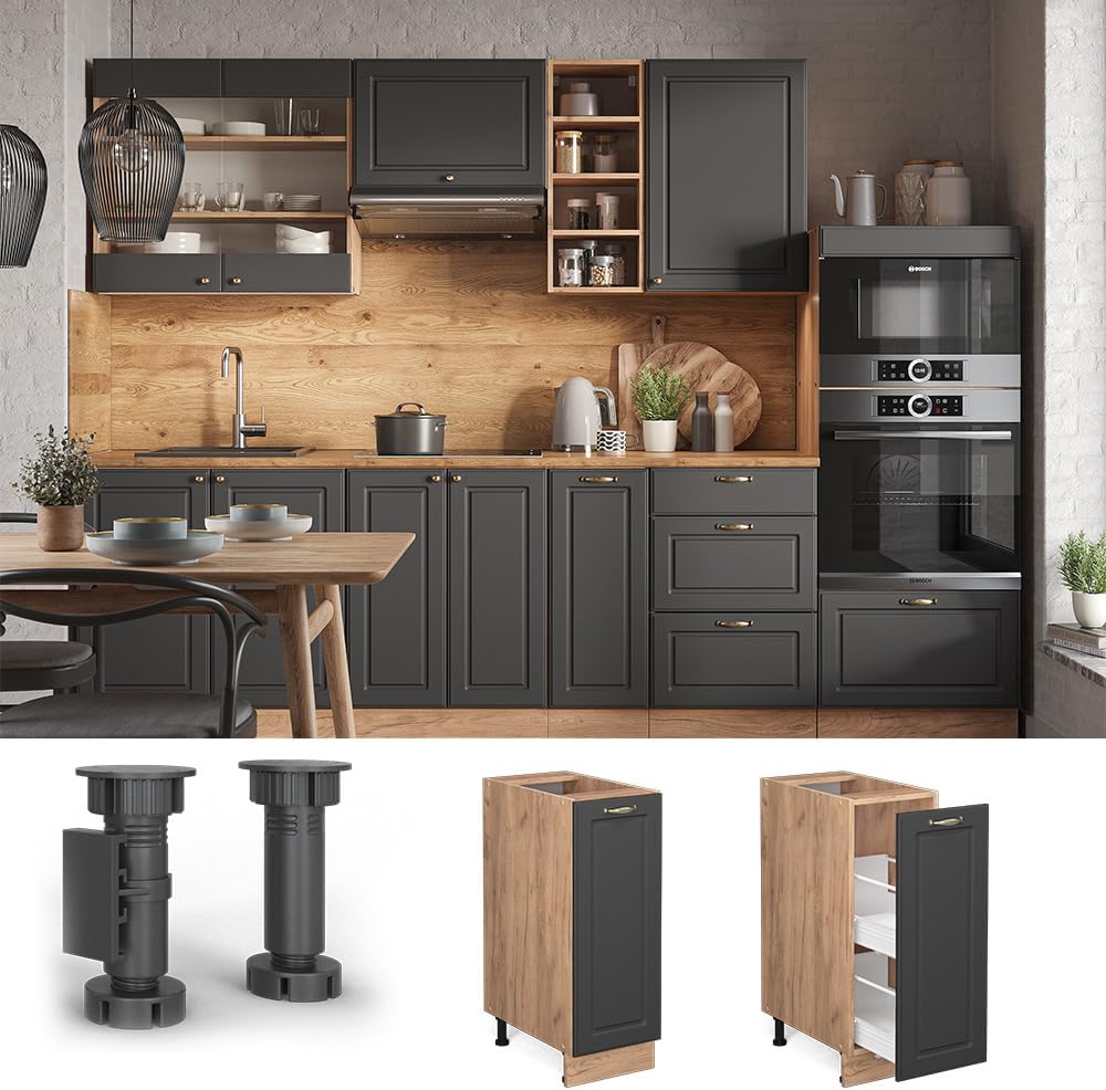 - MATERIAL: Das Küchenmöbel besteht aus pflegeleichter Spanplatte 16 mm, mit einer Melaminharzbeschichtung. Die Fronten sind aus hochwertigem MDF hergestellt