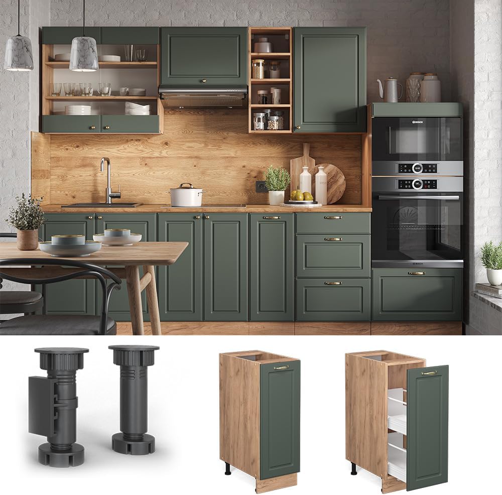 Vicco Apothekerschrank Fame-Line, Grün-Gold Landhaus/Goldkraft Eiche, 30 cm ohne Arbeitsplatte Grün-