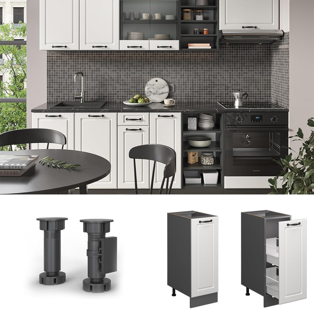 - MATERIAL: Das Küchenmöbel besteht aus pflegeleichter Spanplatte 16 mm, mit einer Melaminharzbeschichtung.