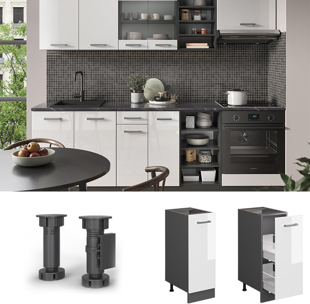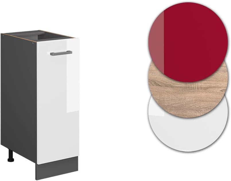 Vicco Apothekerschrank R-Line, Weiss Hochglanz/Anthrazit, 30 cm ohne Arbeitsplatte Weiss Hochglanz A