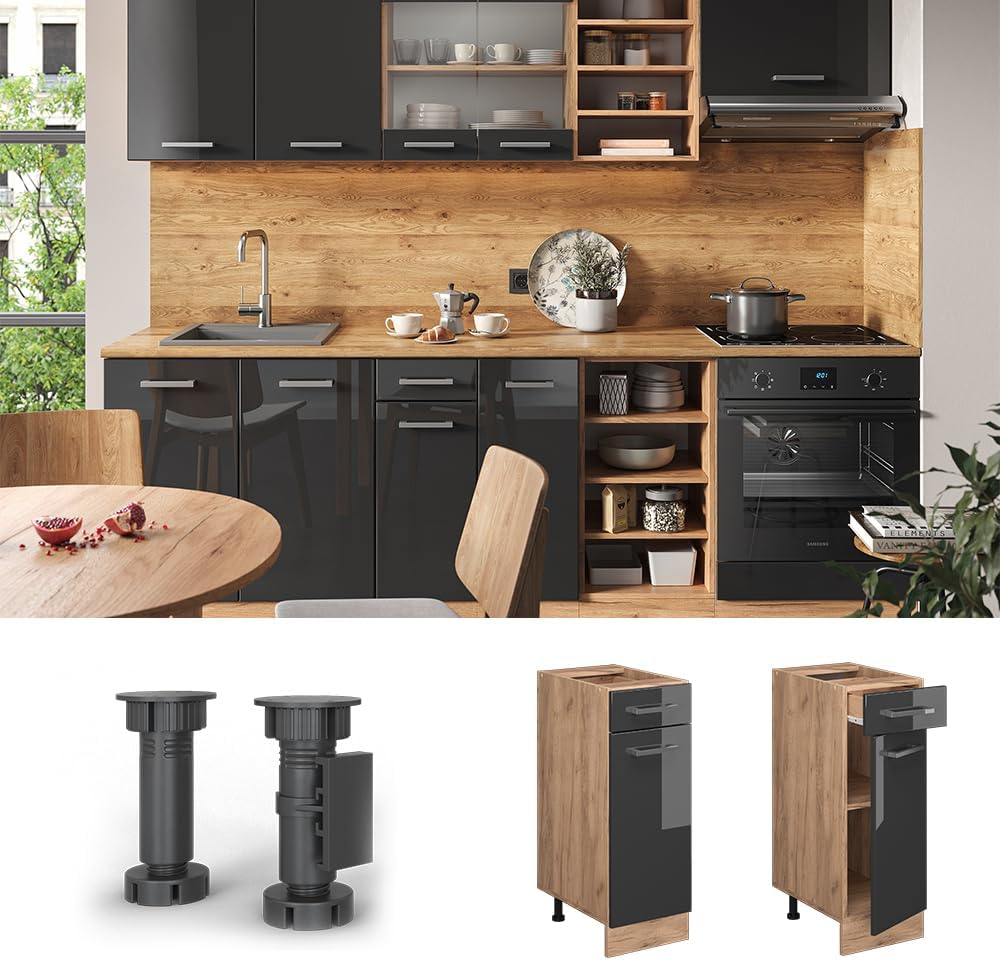 - LIEFERUMFANG: Küchenschrank als Bausatz, Arbeitsplatte, Montageanleitung, Montagematerial.