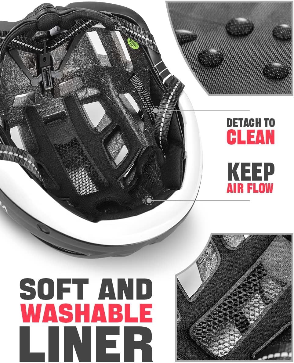 • EINSTELLBAREN GRÖSSE: Fahrradhelm für Herren Damen mit verstellbarem Dual Fit-Design. Auf der Rückseite des Fahrradhelms befindet sich ein Einstellknopf, mit dem der Kopfumfang angepasst werden kann. Einstellbare Grösse: M(54-58cm); L(57-61 cm);
