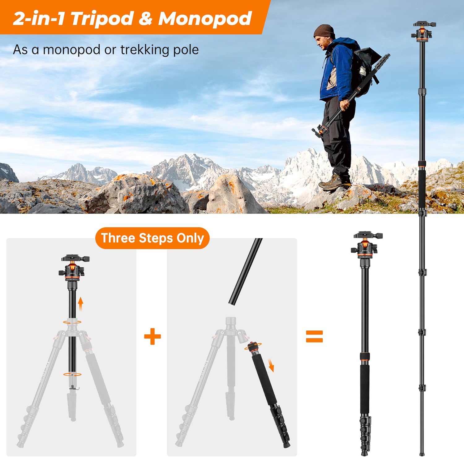 Victiv 200cm Kamera Stativ, Tragbares Stabiles Reisestativ, 2-in-1 Dreibein Stativ & Einbeinstativ m