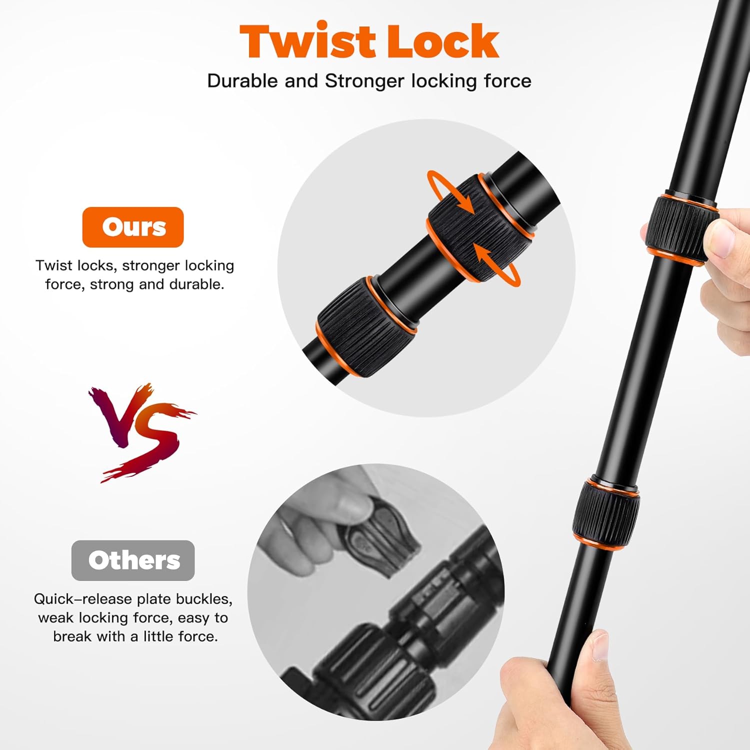 • 【Robustes Kamerastativ mit Drehverschlüssen】 Robustes Stativ mit mehreren verstellbaren Funktionen, einschliesslich Teleskopbeinen, flexiblem Kugelkopf und Winkelverstellplattenschnalle. Sie können die Höhe, den Winkel und die Richtung nach Bedarf