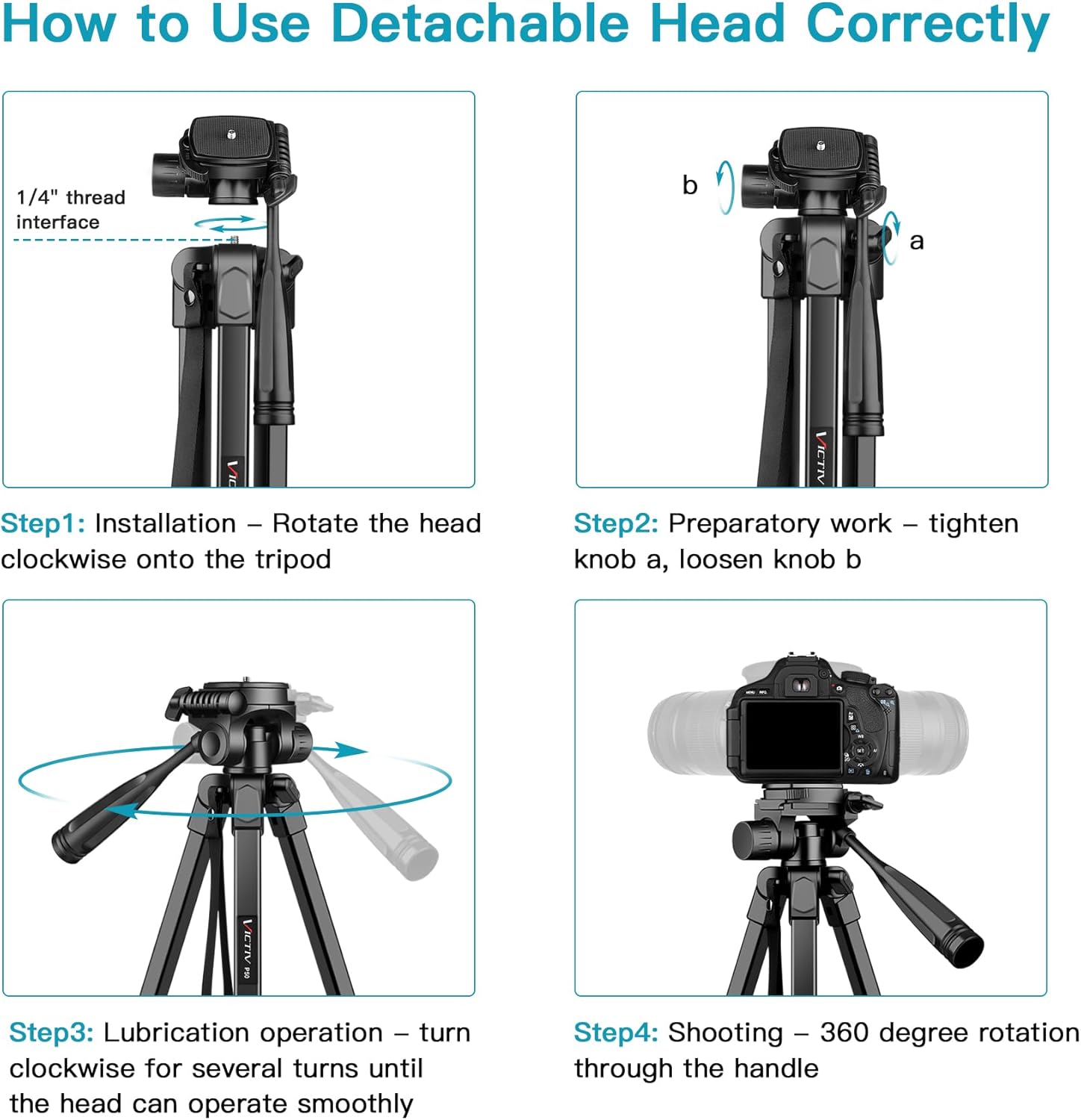 • đŸ“·ă€Abnehmbarer 3-Wege-Panoramakopf】Der Kopf kann horizontale 360-Panoramaaufnahmen, 180-Neigungsaufnahmen und 90-Grad-Vertikalaufnahmen machen. Die maximale Belastung betrĂ€gt 3,5 kg. Sie können einfach und ohne komplizierte Bedienung Aufnahmen
