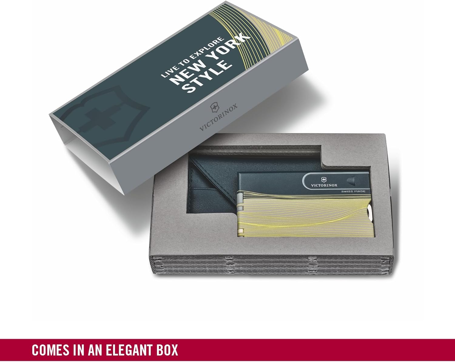 - LIEFERUMFANG & ABMESSUNGEN: 1 Victorinox Swiss Card Classic mit 10 Funktionen, Abmessungen (L x B): 88 x 55 mm, Gewicht: 26 g, Schalenmaterial: ABS / Cellidor, Farbe: New York Style, Artikelnr.: 0.7100.E223