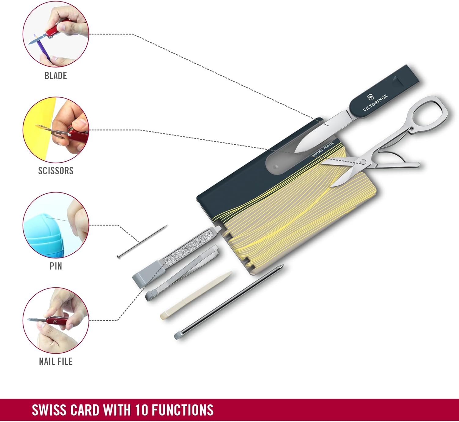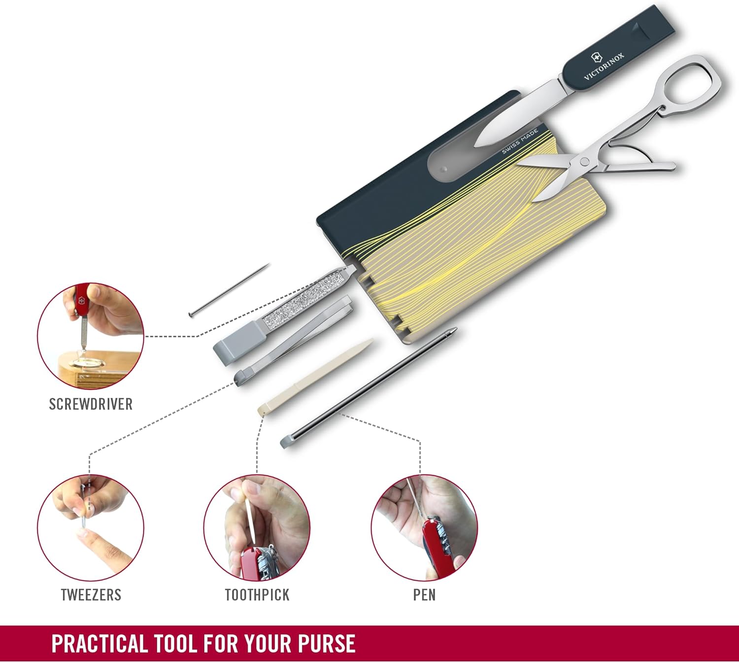 - SWISS CARD CLASSIC: Die Swiss Card Classic bietet eine breite Palette an praktischen Werkzeugen in einer Karte im Kreditkartenformat. Das kompakte Design passt perfekt in Ihr Portemonnaie und ist sowohl im Alltag als auch auf Reisen unverzichtbar.