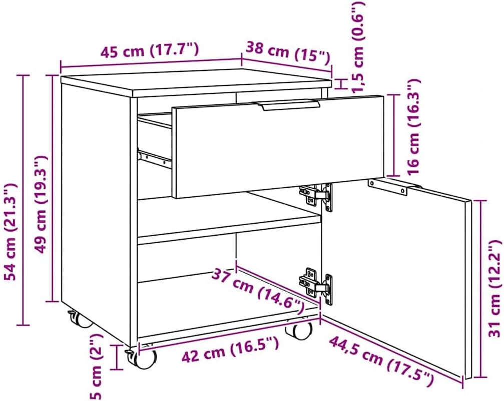 - Dieser klassische Aktenschrank verfügt über Lenkrollen, die für eine einfache Mobilität sorgen, und bietet viel Platz für Getränke, Zeitschriften und Dekoartikel.
