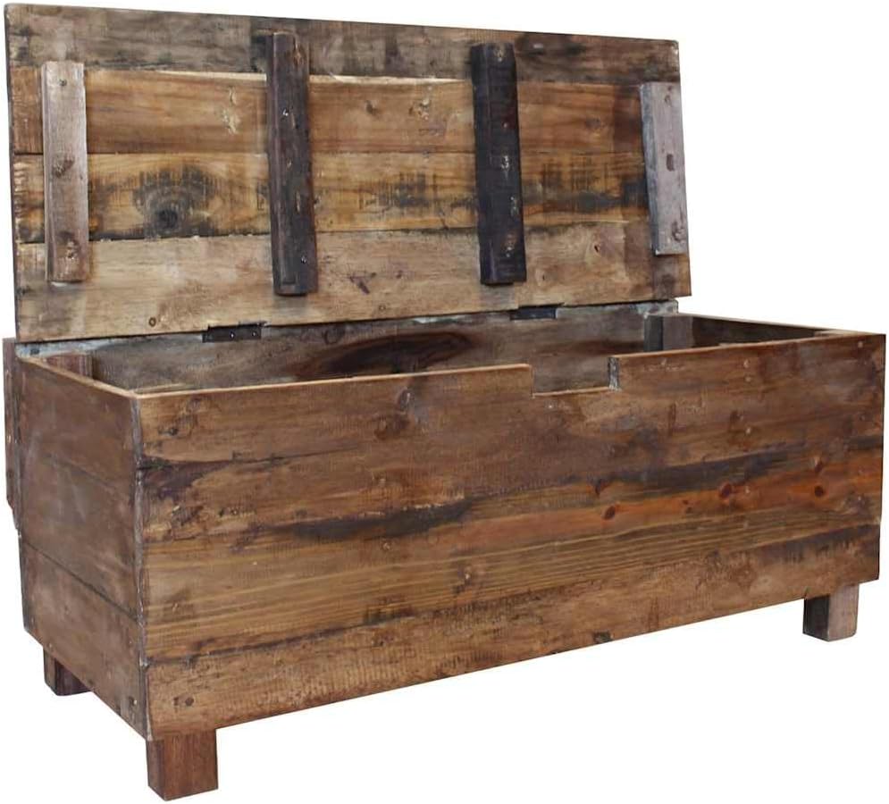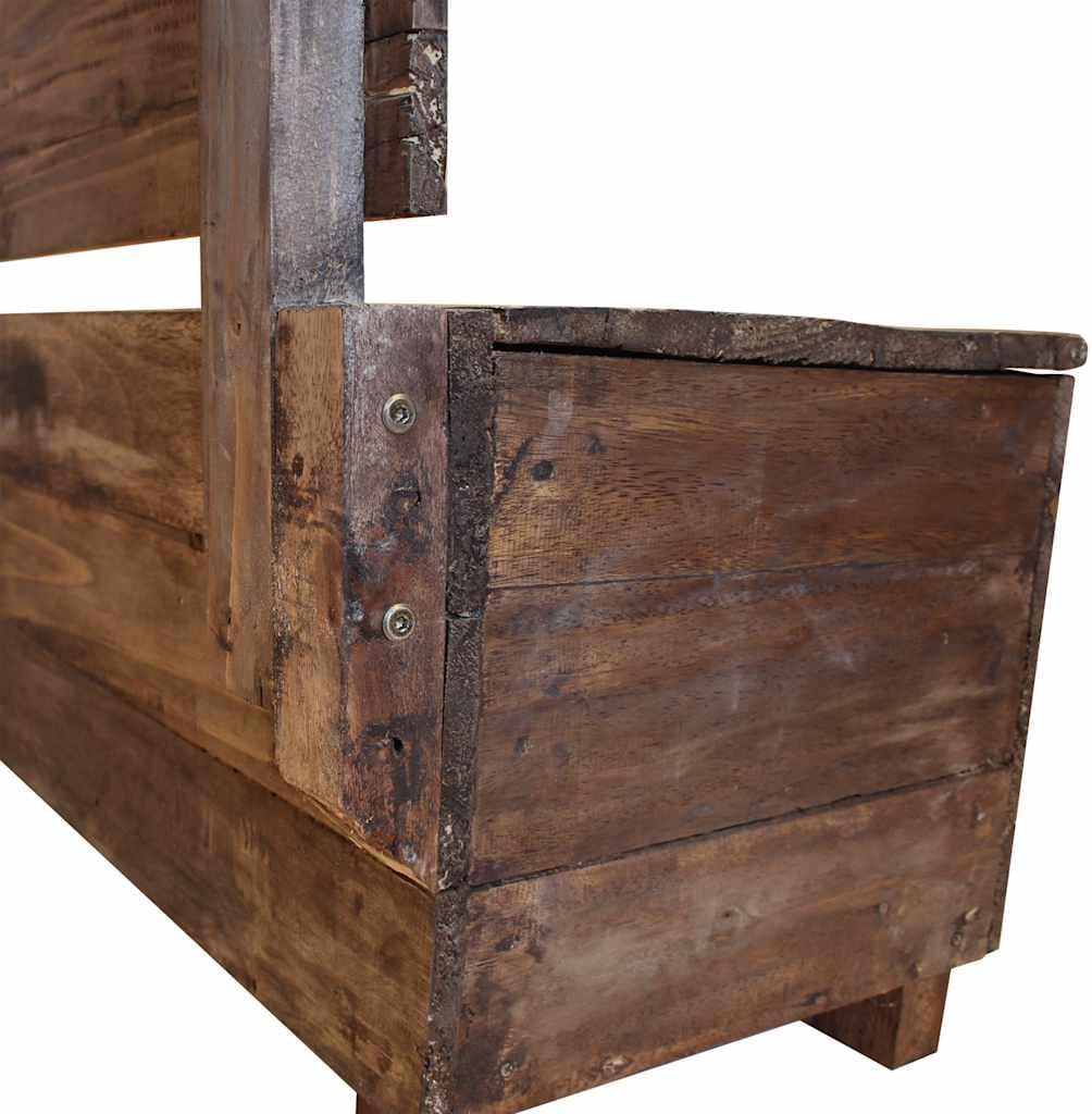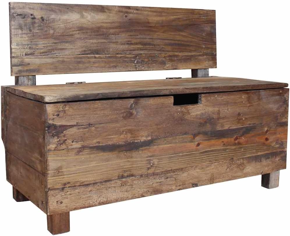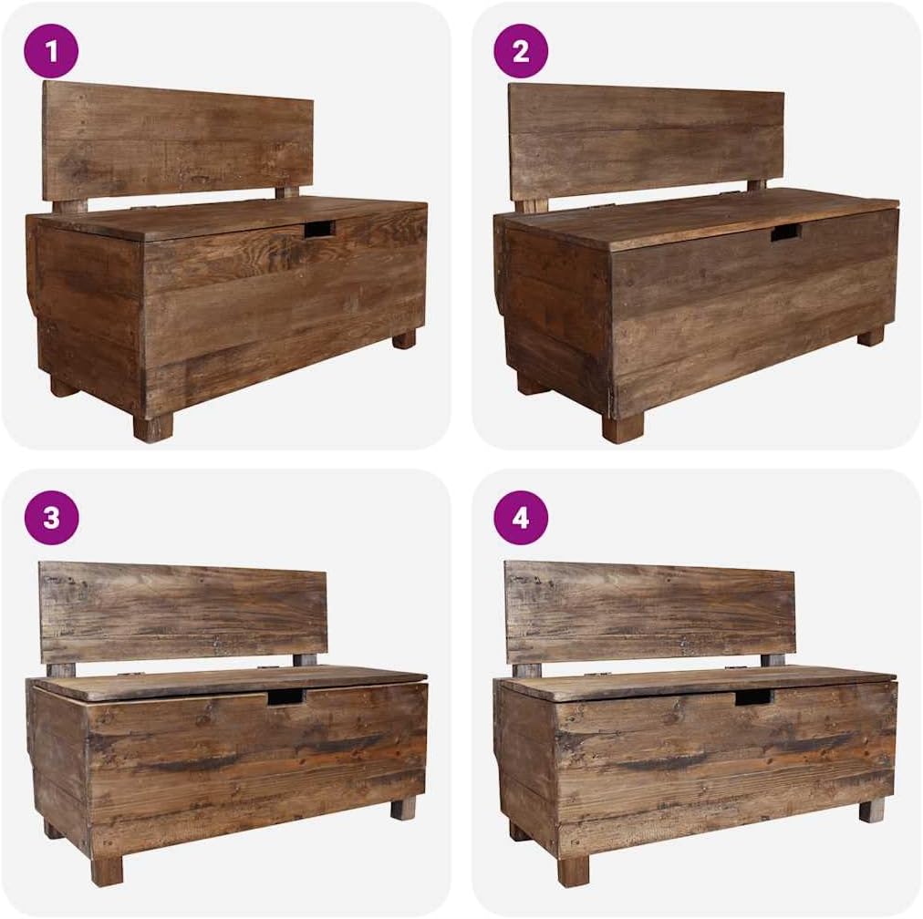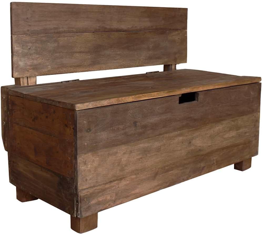 - Sie verfügt über ein grosses inneres Staufach und bietet daher reichlich Platz, um allerlei Arten von kleineren Gegenständen griffbereit aufzubewahren.Diese Bank ist aus recyceltem Massivholz gefertigt; die Eigenschaften verschiedener Holzarten wie
