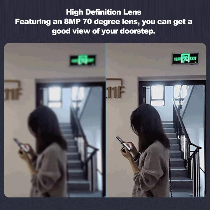 - [High Definition Ansicht] 8 Megapixel- und 70 Grad Objektiv bieten eine hochauflösende Ansicht der Vordertür und sorgen dafür, dass selbst bei mehreren Besuchern keine toten Winkel im Sicherheitsbereich entstehen.