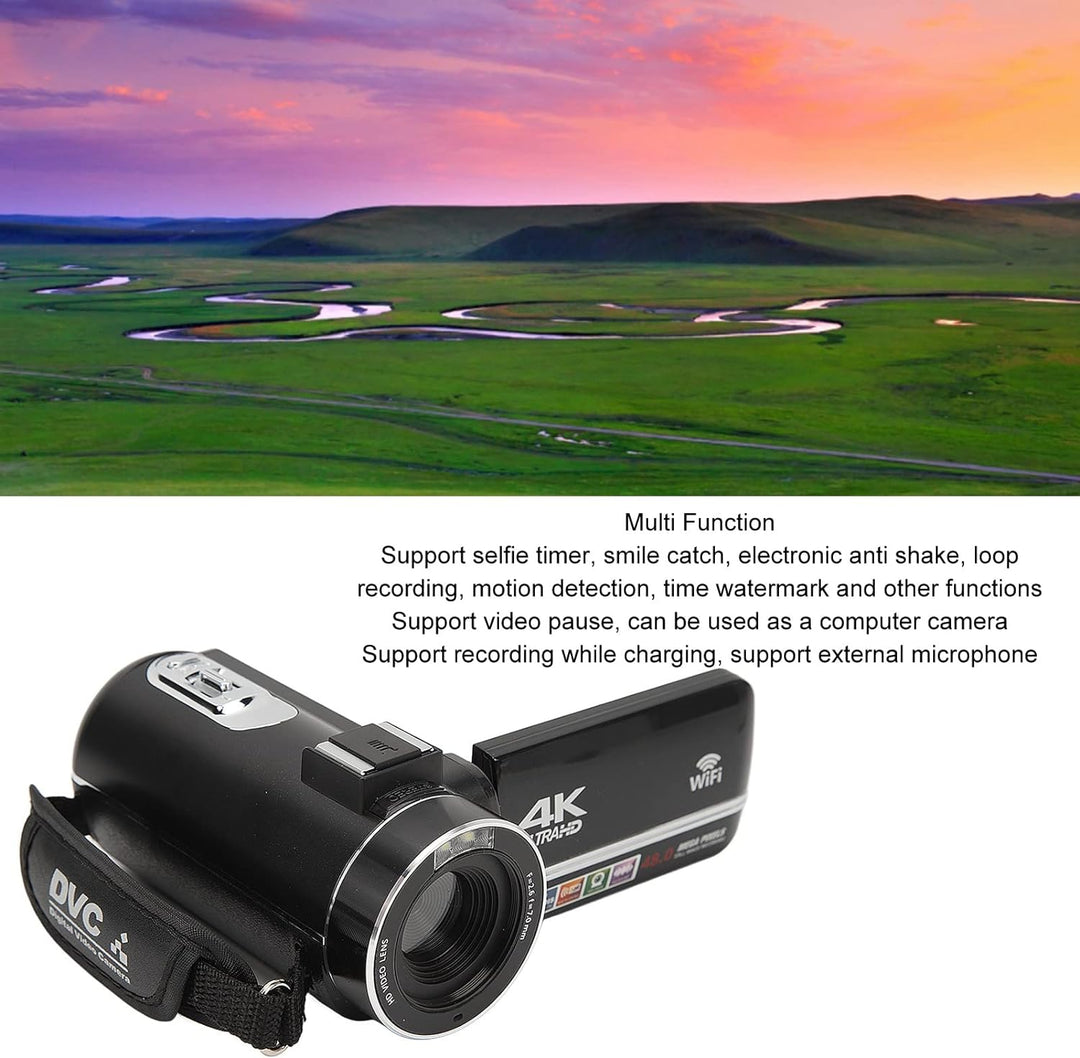 - [HD-Bild] Videokamera mit 3,0-Zoll-IPS-Touchscreen, 4K-Auflösung, 18-fachem Digitalzoom, 48 MP Pixel, HD-Ausgabe, geringe Grösse des Geräts, kann mitgenommen werden, einfach zu bedienen. Mit einem USB-Anschluss können Sie das USB-Kabel zum