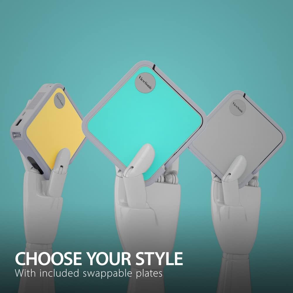 - Lieferumfang: ViewSonic M1 Mini LED-Beamer, Micro USB Kabel, Netzkabel, Kurzanleitung, Fernbedienung, austauschbares Cover (mint, gelb, grau)