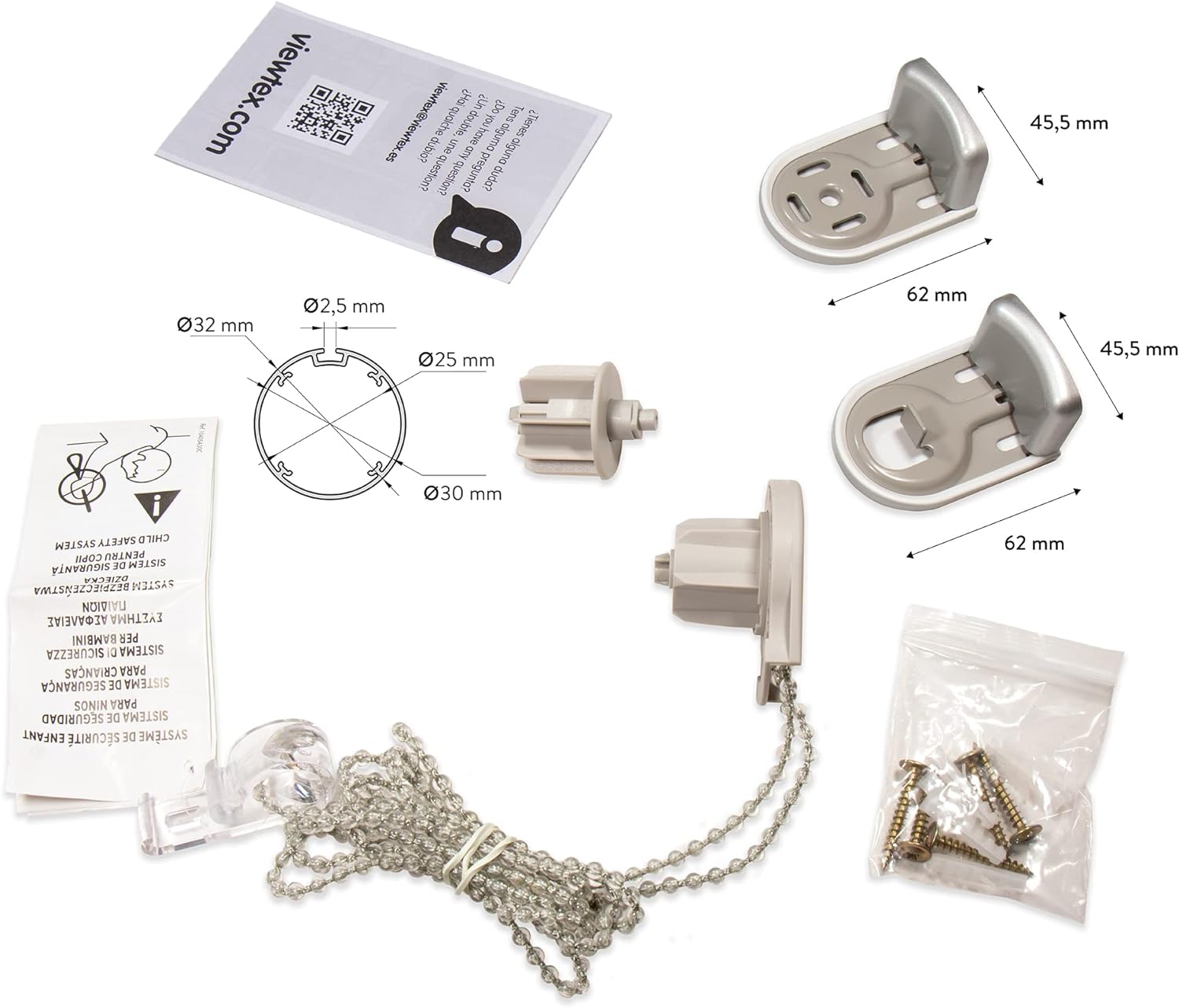 - Kettenantrieb mit Kindersicherungssystem Aluminiumrohr Verstecktes Gegengewicht. Der Mechanismus ist weiss. Die Kette kann auf der linken oder rechten Seite installiert werden und die Installation kann an Wand oder Decke erfolgen. Diese Rollos sind