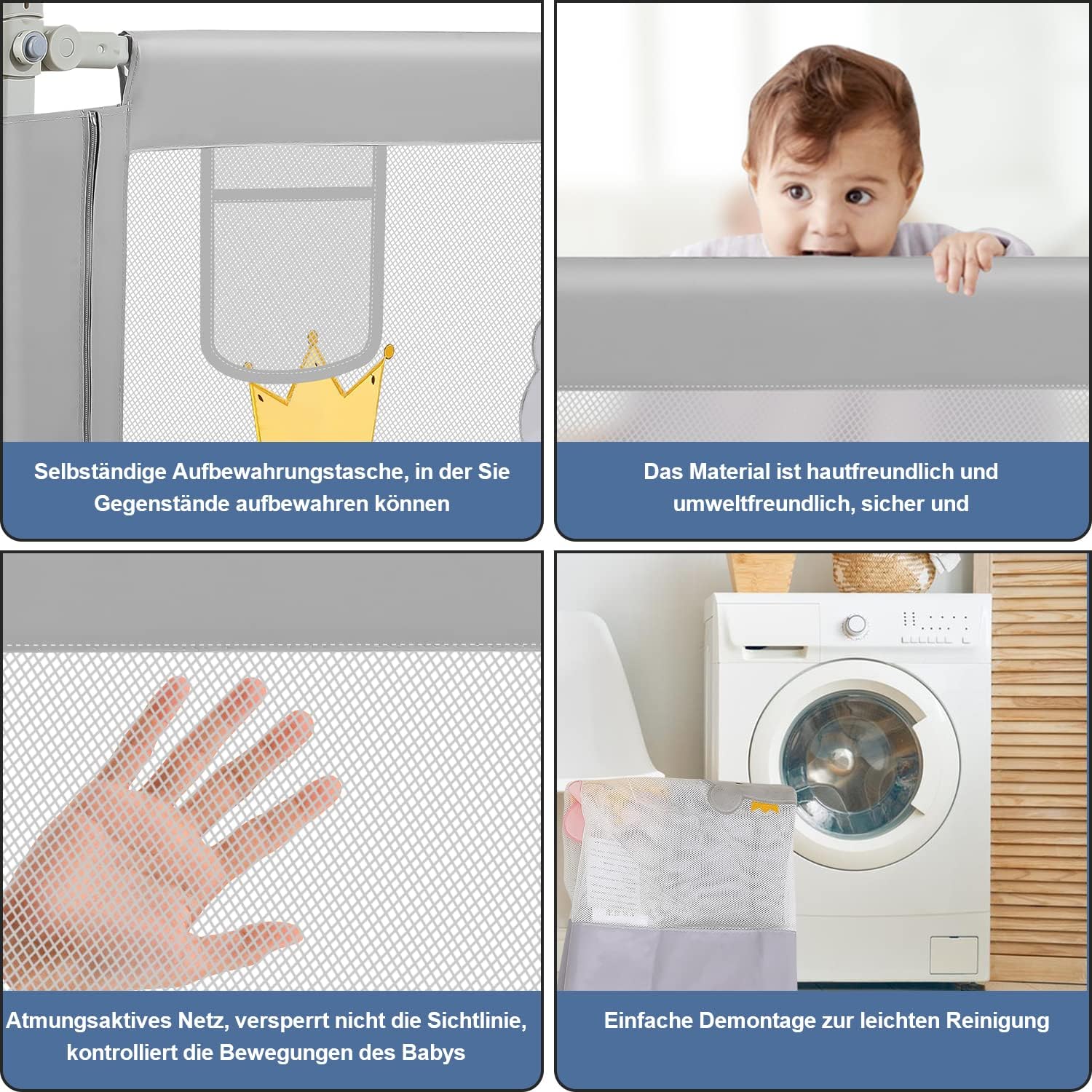 - Bequemlichkeit: Der Bezug des Bettgitters besteht aus atmungsaktivem Mesh-Polyester, das Netz ist so konzipiert, dass es atmungsaktiv und verschleissfest ist und einen gewissen Grad an Transparenz aufweist. Die genähten Taschen sind ebenfalls mit Mesh