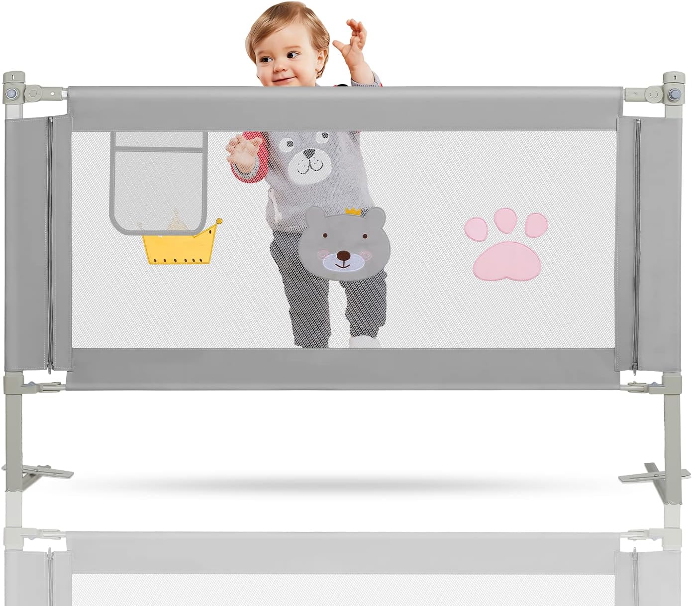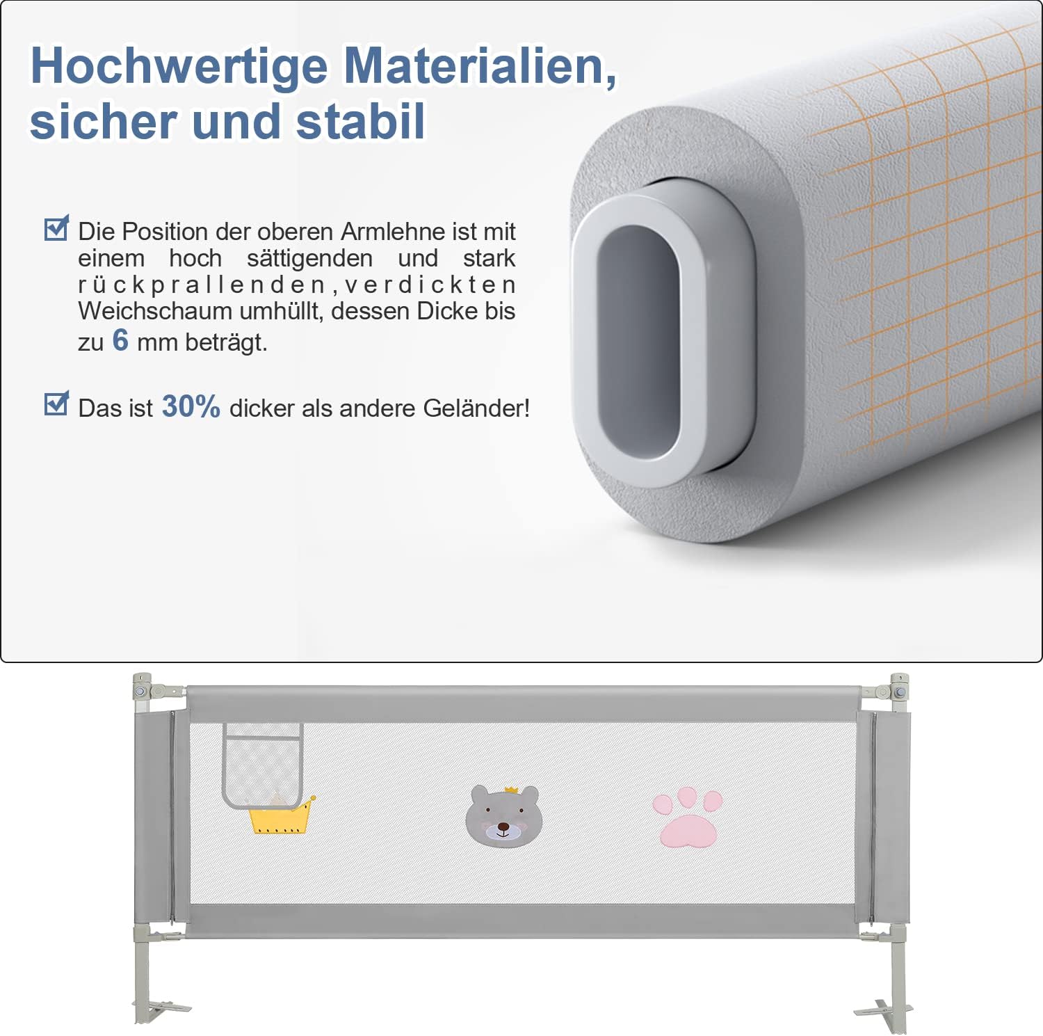 - Zubehör: Das Produkt ist mit stanzfreien Schraubaufklebern ausgestattet: Es hilft Ihnen, das Kindergeländer am Bett zu befestigen, ohne Löcher zu stanzen, und verhindert, dass es umkippt und herunterfällt;