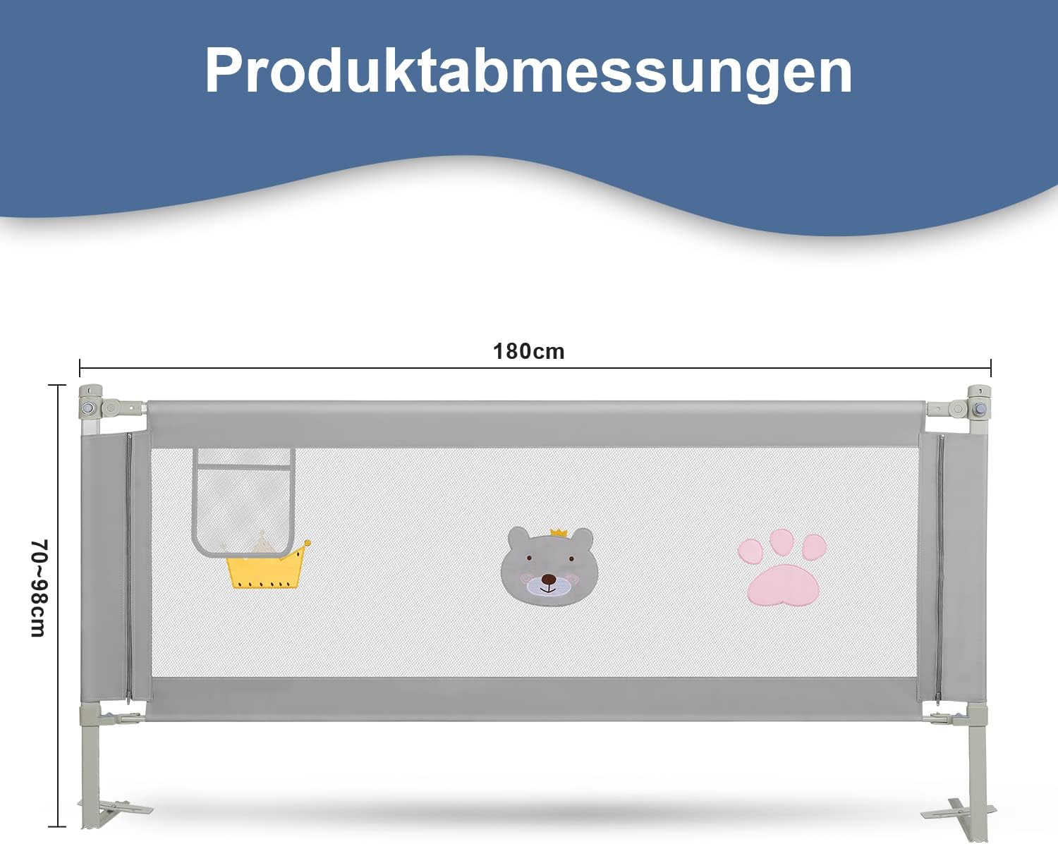 - Höhenverstellbar: das neue Bettgitter kann je nach Dicke der Matratze frei eingestellt werden, 28 Positionen einstellbar, einstellbare Höhe von 70-98cm. vertikaler Lift, einfaches Auf- und Absteigen vom Bett